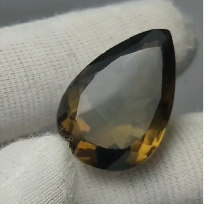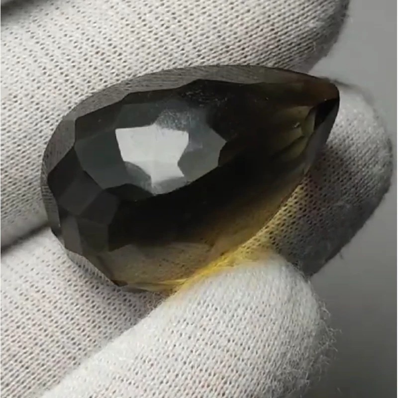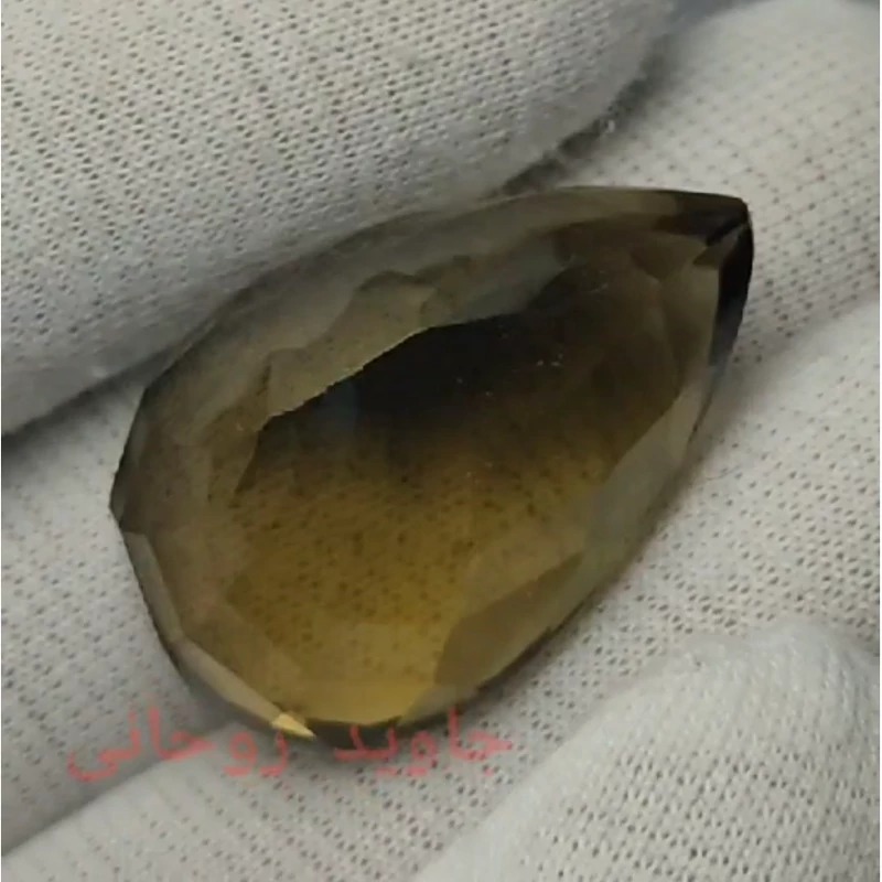نگین هانی کوارتز دودی 49 قیراطی تراش اشکی فست