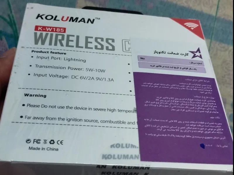 با شارژر بیسیم «کلومن» مدل « K-W 185» خود را از قید و بند کابلهای شارژ رها کرده و باتری گوشی موبایلتان را بدون نیاز به استفاده از کابل، شارژ کنید.شرکت تولید کننده مدل K-W 185 را بهصورتی طراحی کرده که میتوانید گوشی موبایل را بهصورت