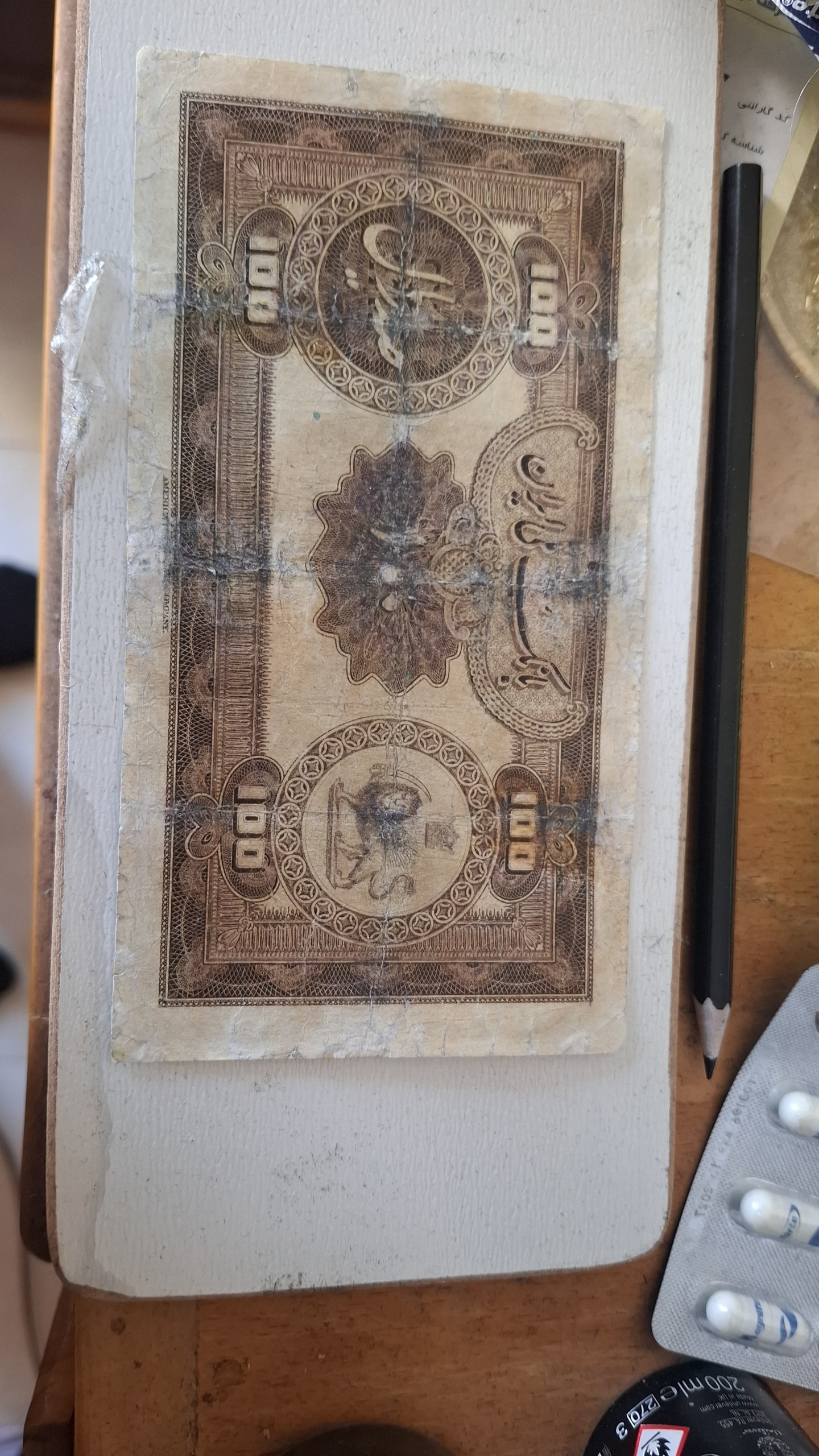 صد ریالی نایاب کلاه بزرگ رضا شاه کاغذ ضخیم وعالی در چندین نقطه تعمیر داره فقط مطابق توضیحات بخرید