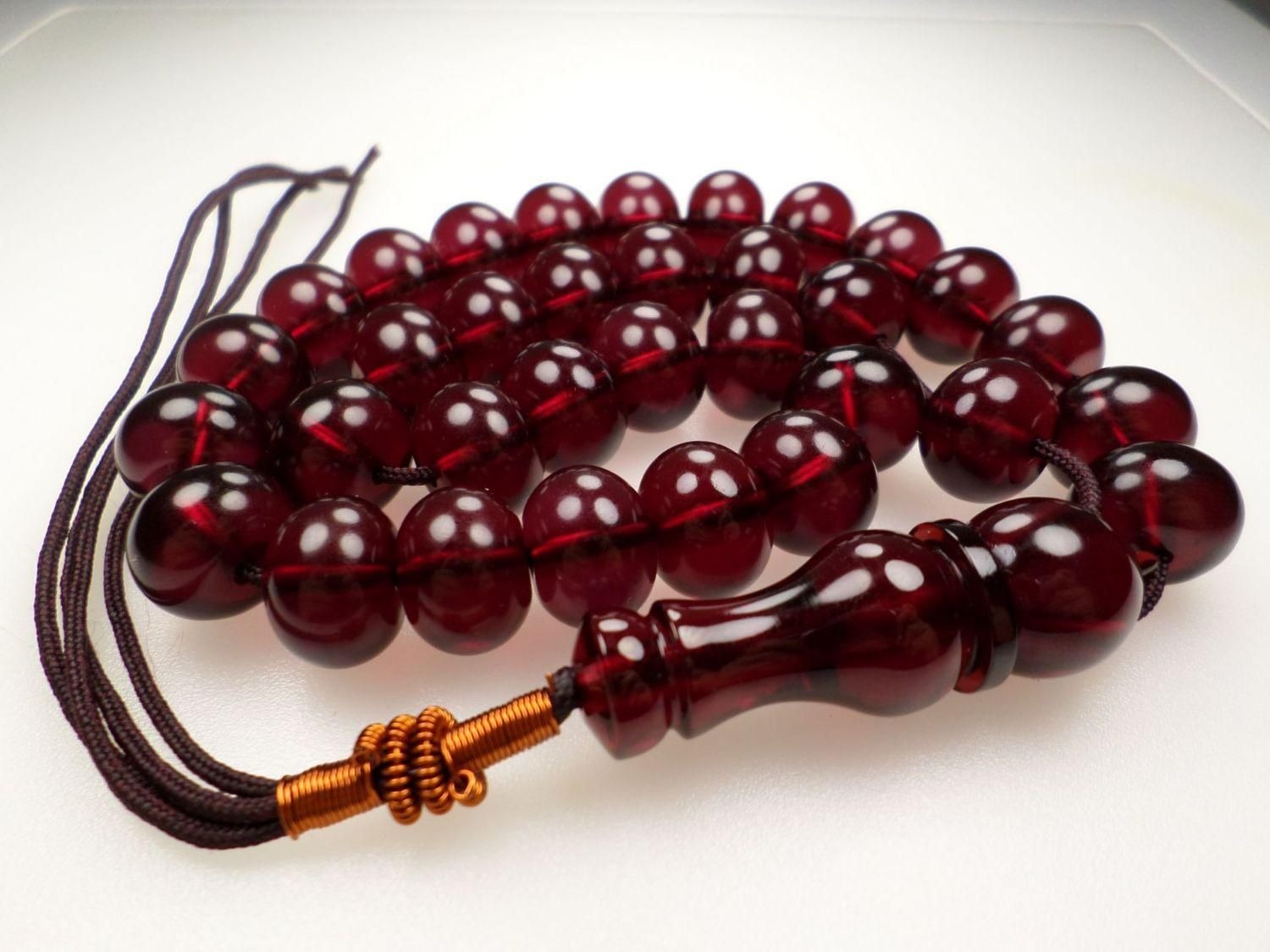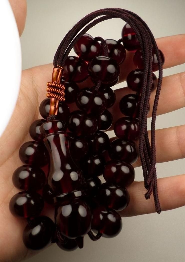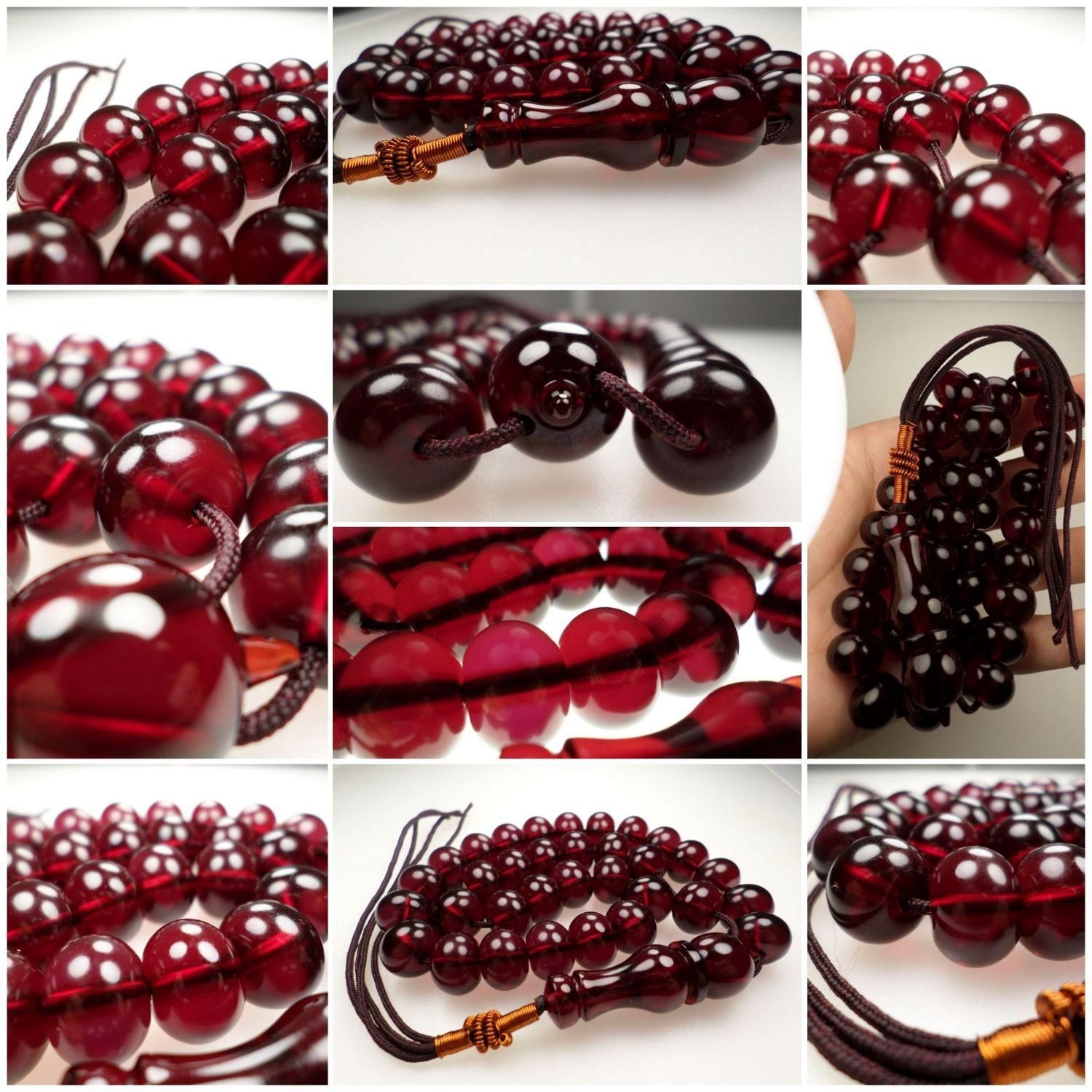 تسبیح آب حیات 33 عددی به رنگ سرخ خون کفتری بسیار زیبا مهره های تسبیح نخ نما و تراش تمام دست میباشد.