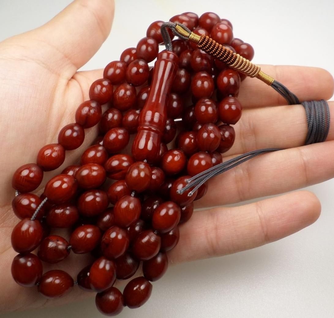 تسبیح کهربا 101 عددی شمش و تراش بی نظیر کمانچه.