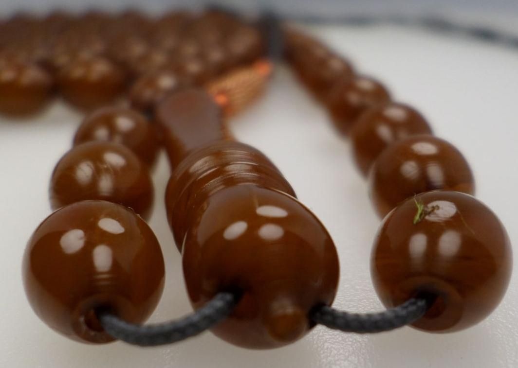 تسبیح کهربا 101 عددی شمش و تراش بی نظیر کمانچه.