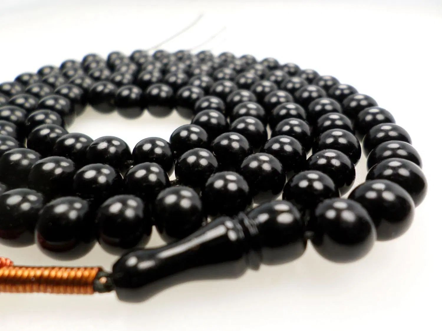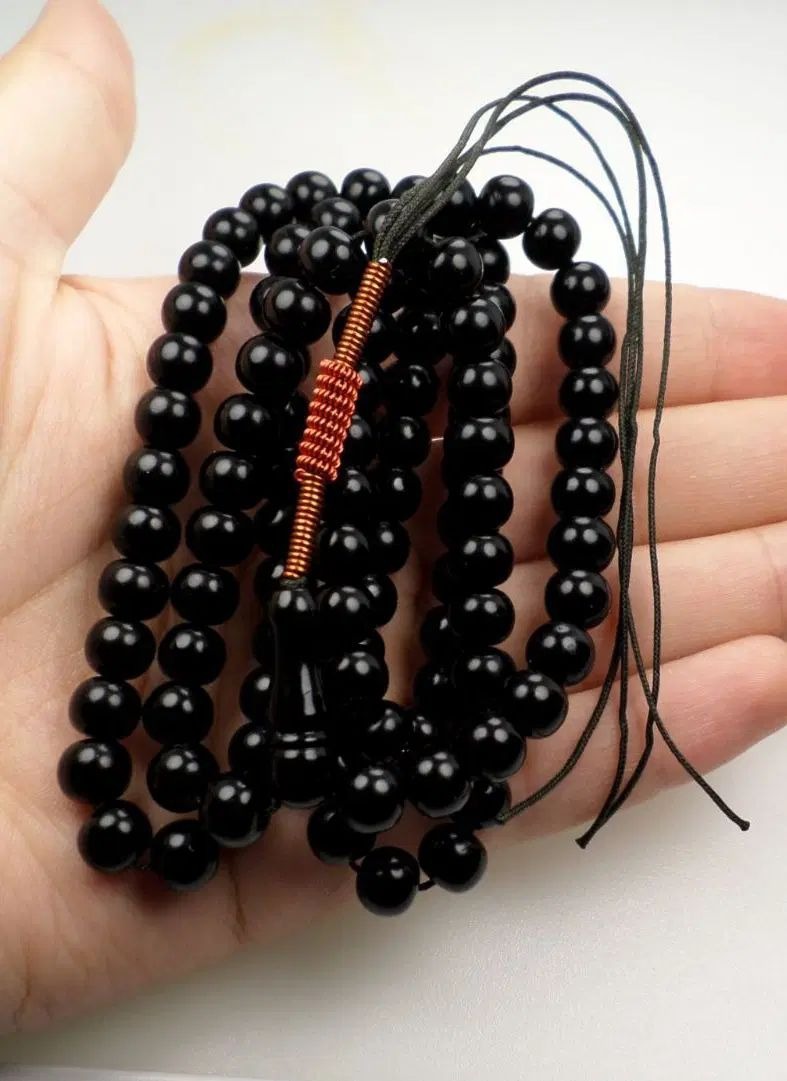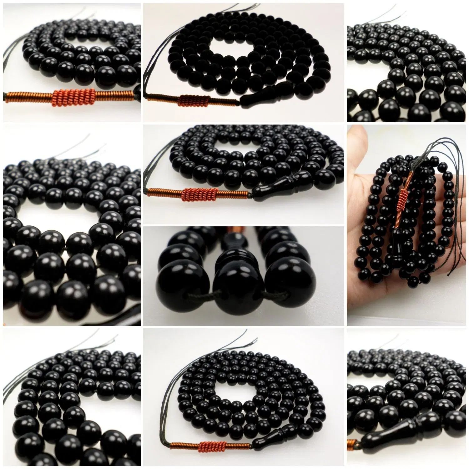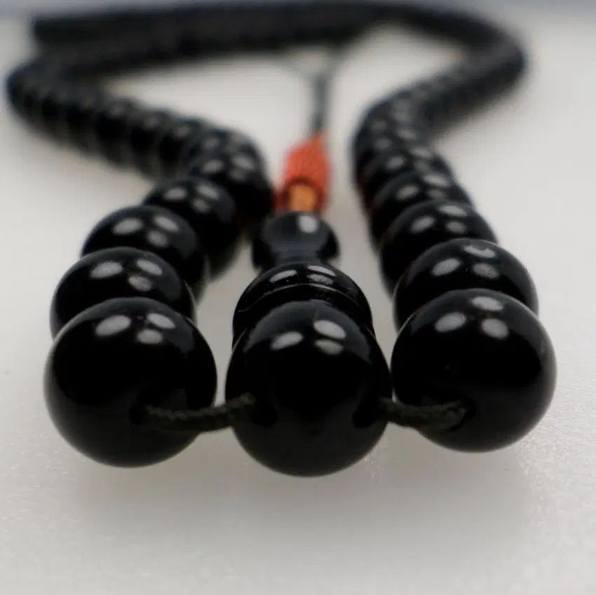 تسبیح سندلوس سیاه 101 عددی تراش تمام دست  آنتیک به رنگ سیاه پر کلاغی .