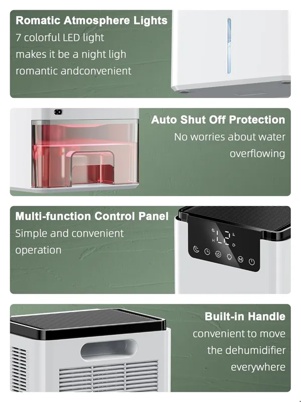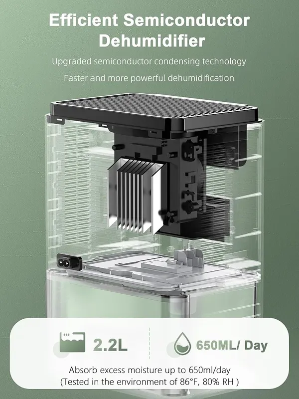 رطوبتگیر پیشرفته برای خانه»؟ با فناوری نیمههادی پیشرفته، رطوبت را به سرعت و بیصدا از بین میبرد. مخزن آب 2200 میلیلیتری برای ذخیرهسازی کافی. طراحی شیک، کنترلهای آسان برای استفاده و مزایای محیط زندگی سالم. ایدهآل برای اتاق خواب، حمام، RV، کمد لباس، گنجه و تریلر. (برای زیرزمین مناسب نیست).