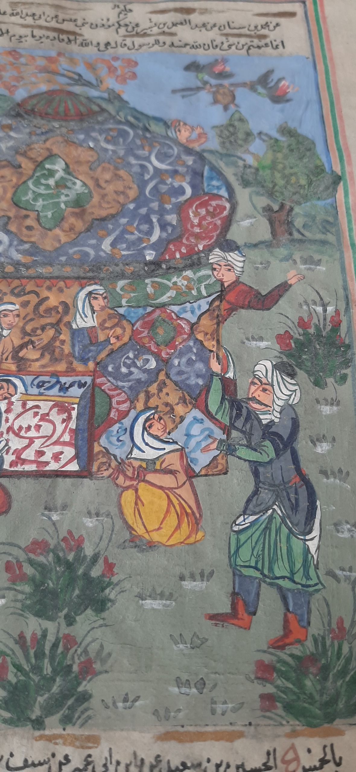 یک برگ خطی با نقاشی مینیاتور قدیمی کمیاب