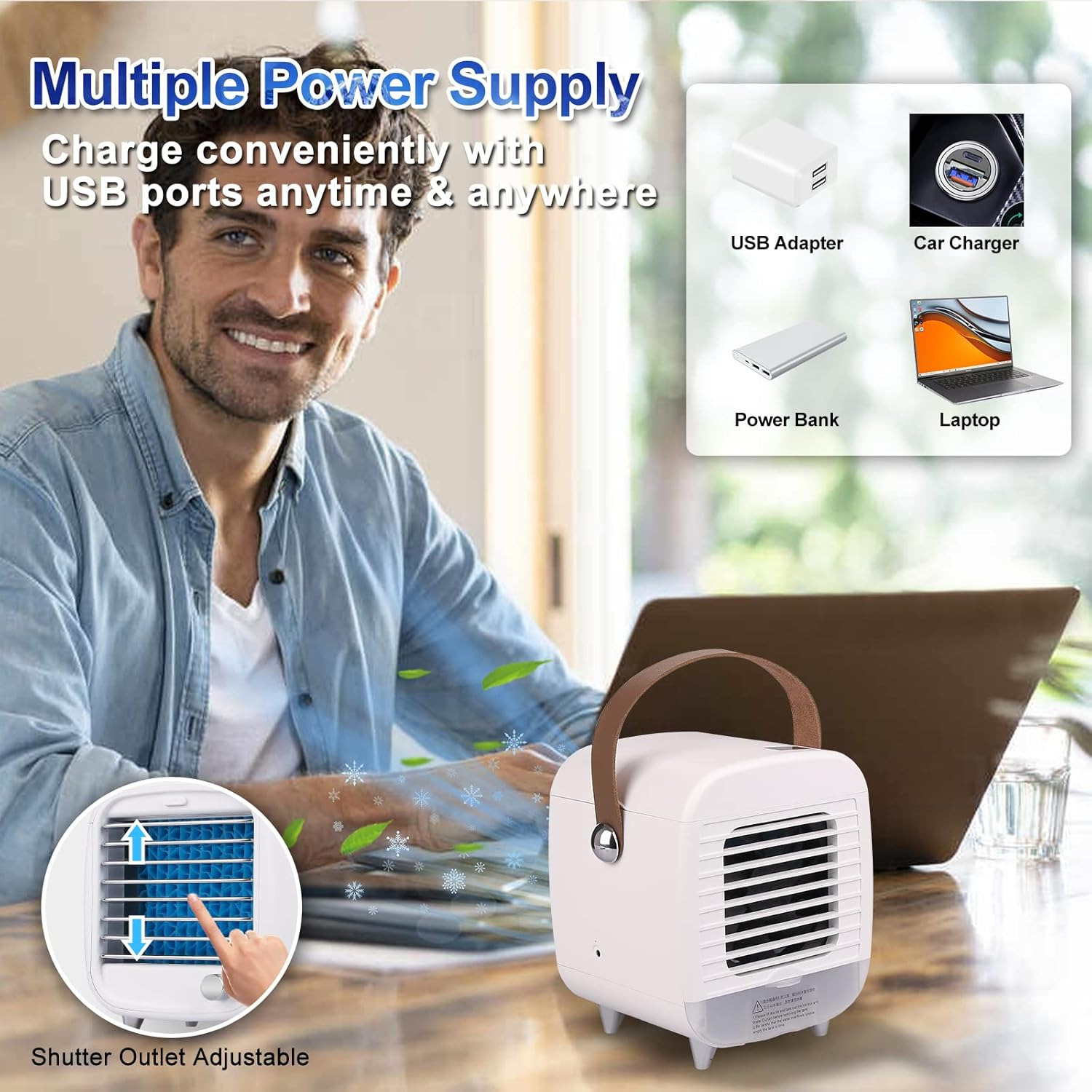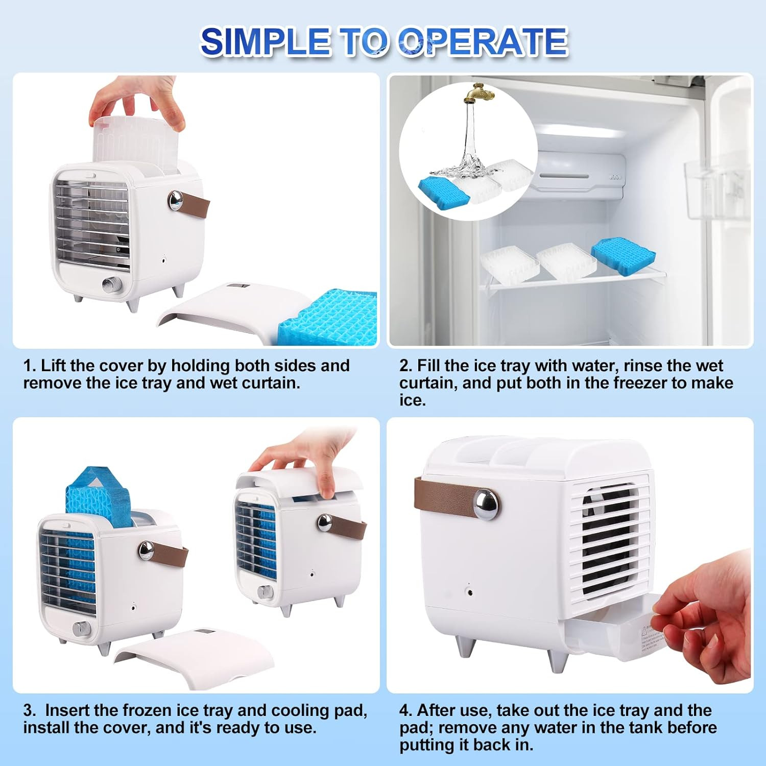 این یک مینی کولر آبی قابل حمل با دسته می باشد یا می توان به عنوان مینی کولر تبخیری با چراغ LED اما با طراحی فوق العاده خاص که به شکل یک کولر فضایی با پد تبخیری و 2 سینی یخ می باشد این مینی کولر آبی قابل حمل AC برای اتاق، چادر، دفتر، ماشین با قابلیت حالت شارژی می باشد.