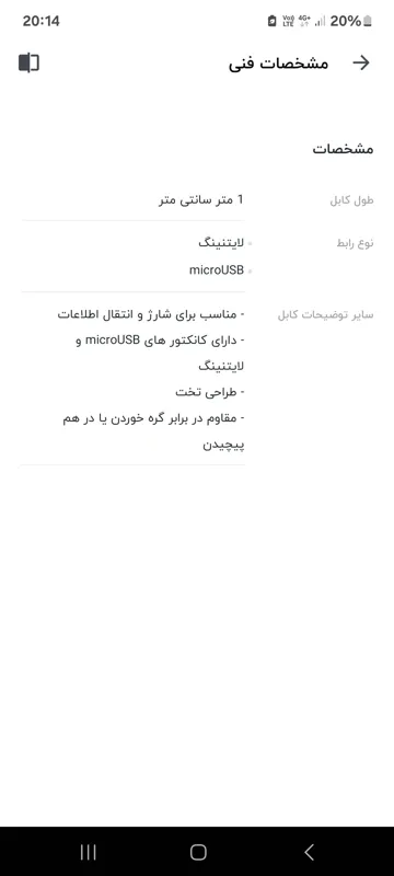 | نوع کابل | کابل شارژ میکرو USB |
