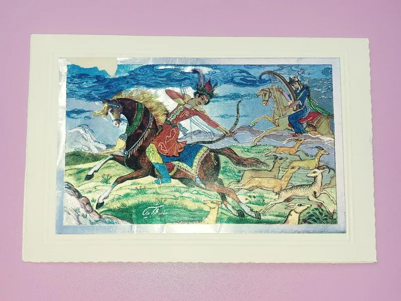 کارت پستال قدیمی و براق با تصویر شکارگاه