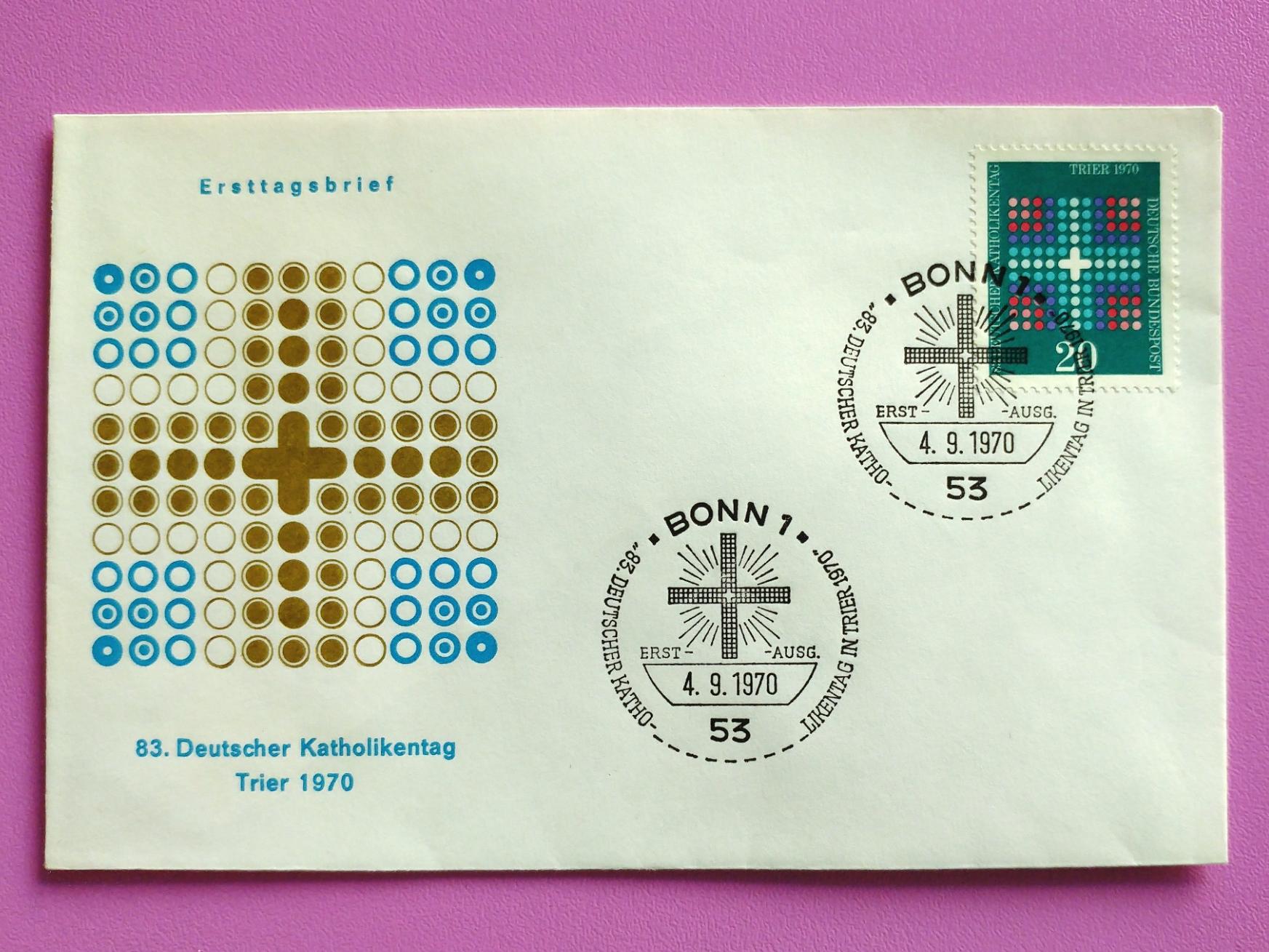 پاکت مهرروز کمیاب نماد سالروز کاتولیک آلمان 1970