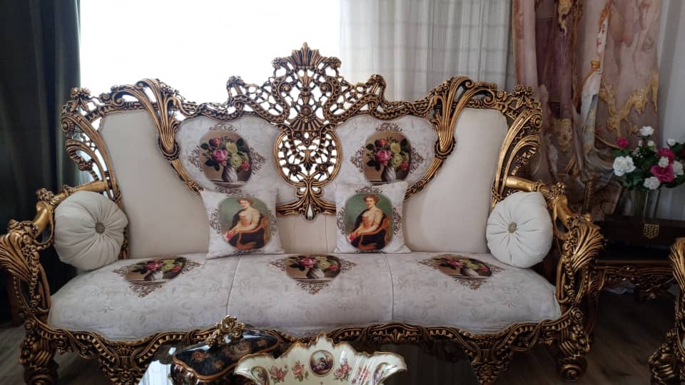 رنگ طلای وری کوبی شدی پارچه ارین کرم روشن با نقوش کلاسیک کوسن های طرحدار زیبا و فوم سرد بسیار مرغوب و راحت متریال سازنده این اثر ارزشمند هستن قیمت بسیار مناسب