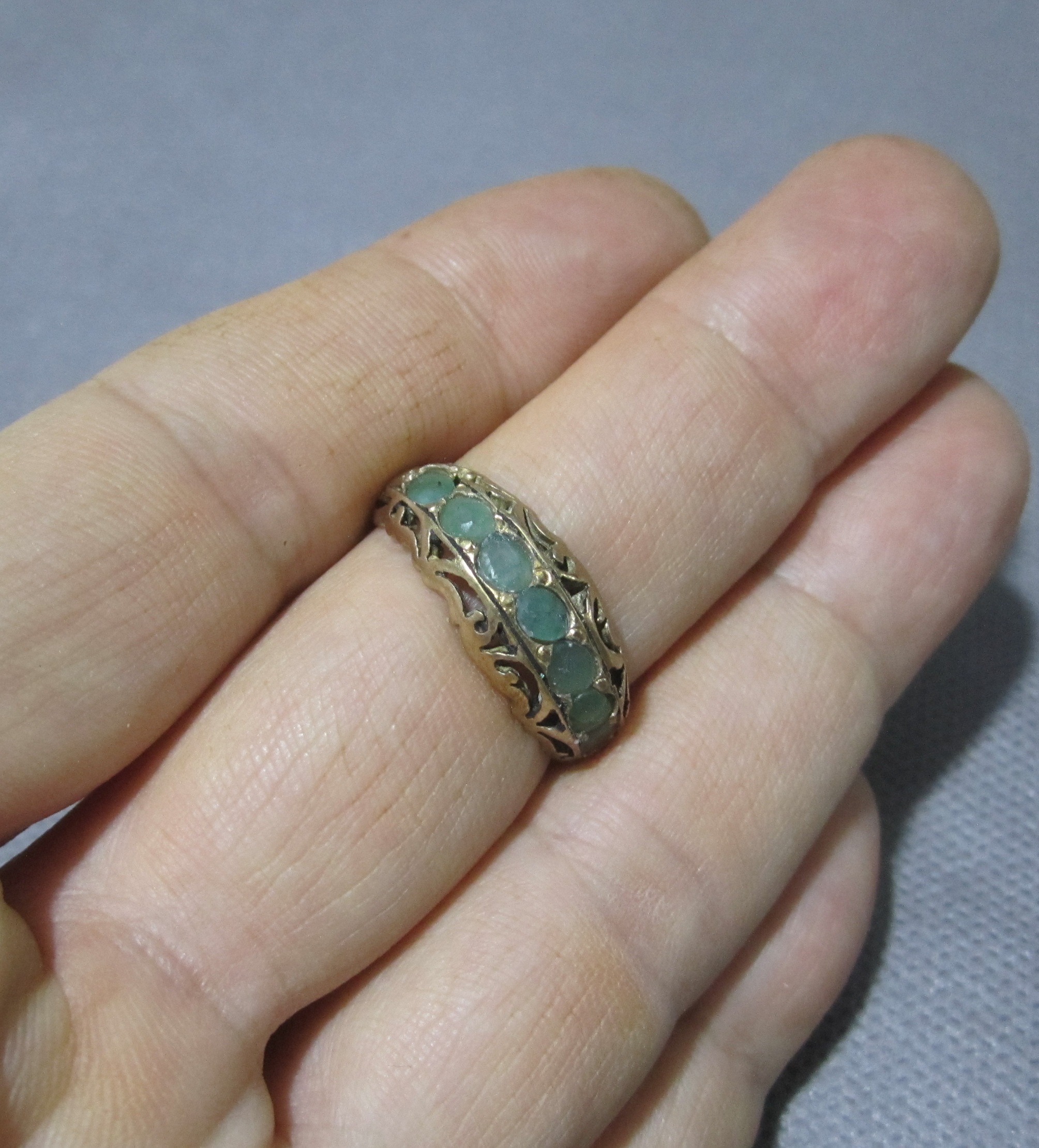 انگشتر زمرد زامبیا با رکاب طلا روسی مناسب آقایان و بانوان دارای 7 قطعه زمرد زامبیا اصل و معدنی پاک طبق تصویر (2568). ابعاد زمردها تقریبا 3 میلیمتر است؛ سایز انگشتر 63 است (قطر داخل انگشتر 20 میلیمتر است). رکاب این انگشتر، آلیاژی از مس و روی است که با نام طلا روسی شناخته می شود. توجه فرمایید دقیقا همین محصول که در تصویر می بینید برای مشتری ارسال خواهد شد. خواهش می کنم برای اطلاع از زمان دقیق دریافت بسته با اداره پست منطقه ای تماس بگیرید.
