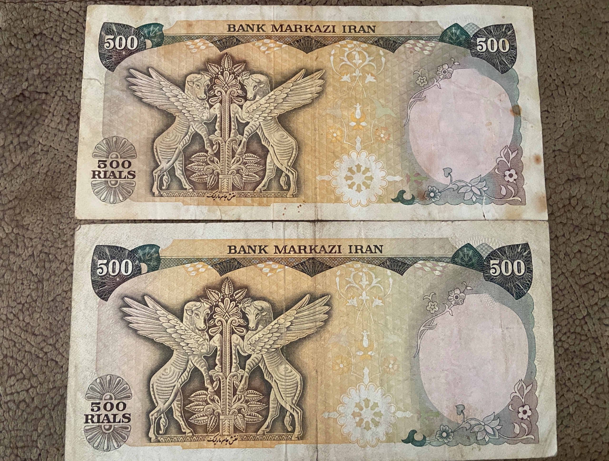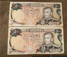 دو عدد اسکناس 500 ریال پهلوی امضا کمیاب تمیز