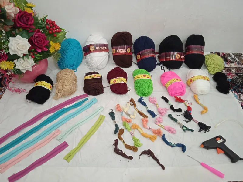 لوازم خیاطی و کاموا بافی نوی نو مطابق تصاویر به همراه چسب حرارتی و دیگر لوازم مطابق تصاویر