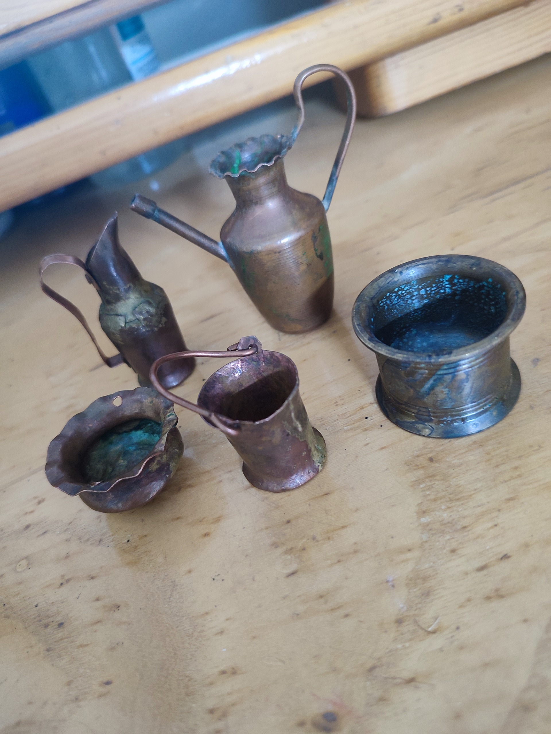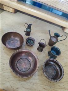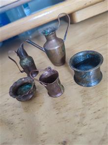 ظروف مینیاتوری کوچک مسی جفت جاشمعی فلزی قدیمی