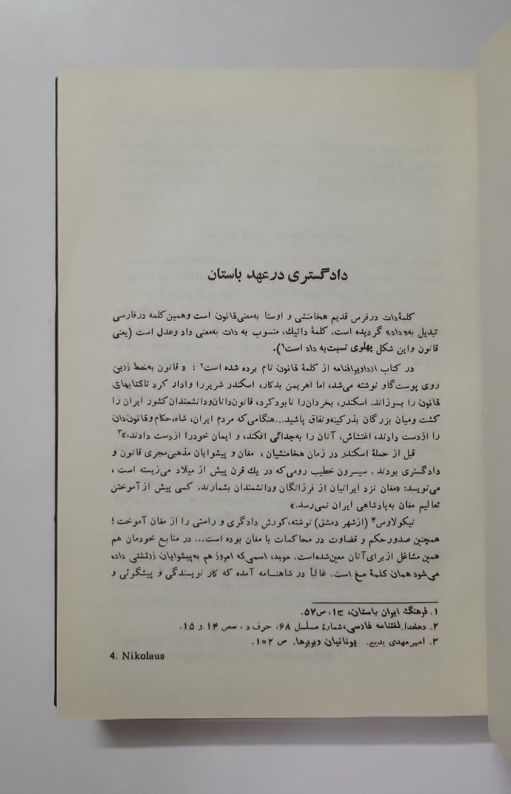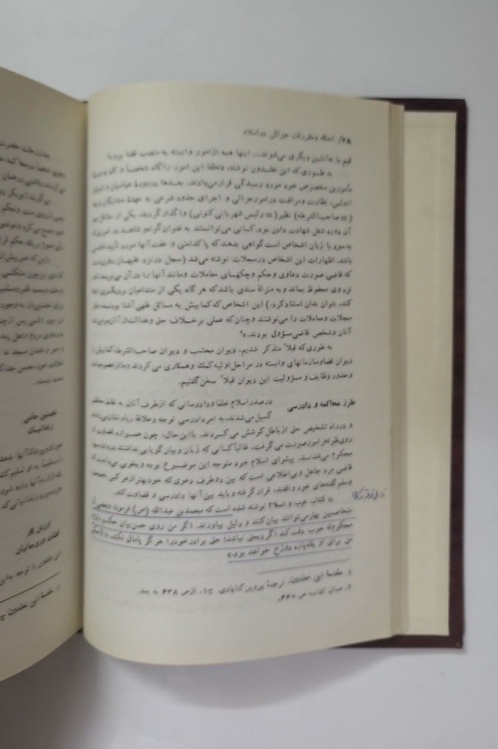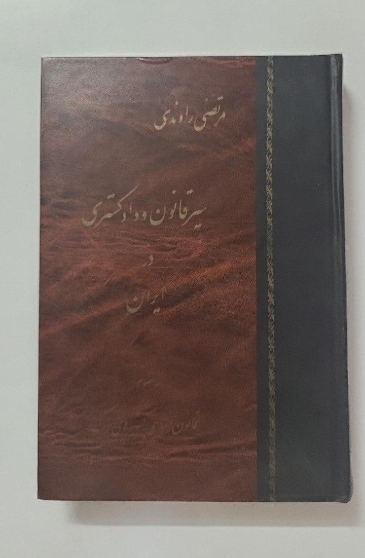 سیر قانون و دادگستری در ایران به همراه قانون اساسی کشورهای بزرگ تالیف مرتضی راوندی چاپ نخست انتشارات چشمه سال 1363 قطع وزیری جلد گالینگور (صفحه 68 زیر چند سطر خط کشیده شده که در عکس چهارم مشخص است) کمیاب