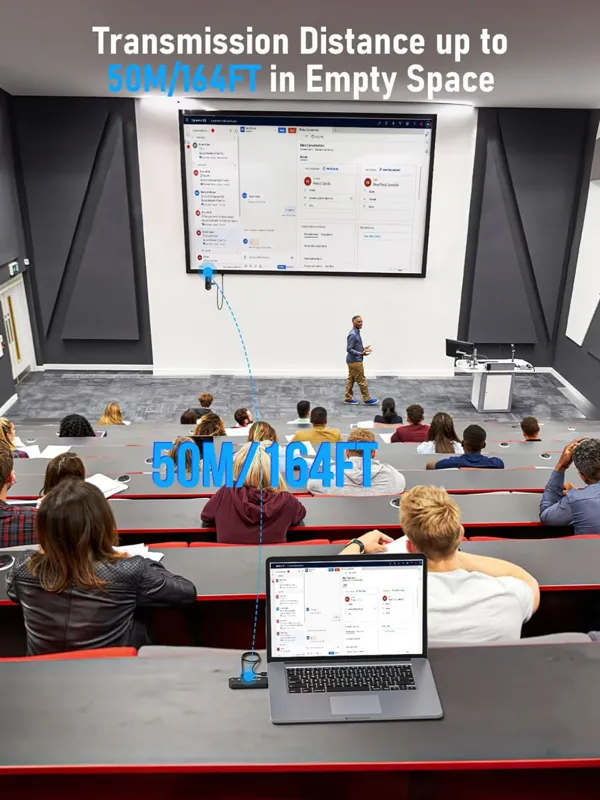 انتقال سیگنال 5G/2.4G کیت بیسیم HDMI Lemorele به روش انتقال سیگنال دو فرکانسه 5G/2.4G مجهز شده است که انتقال ویدیو را پایدارتر و سریعتر میکند. از وضوح تصویر فول اچدی 1920*1080esam60Hz پشتیبانی میکند. از تصاویر واضح و زنده روی صفحه نمایش بزرگ لذت ببرید. این توسعهدهنده انتقال بیسیم HDMI همراهی ایدهآل برای گردهماییهای خانوادگی، جلسات اداری، آموزش و تدریس و موارد دیگر است.