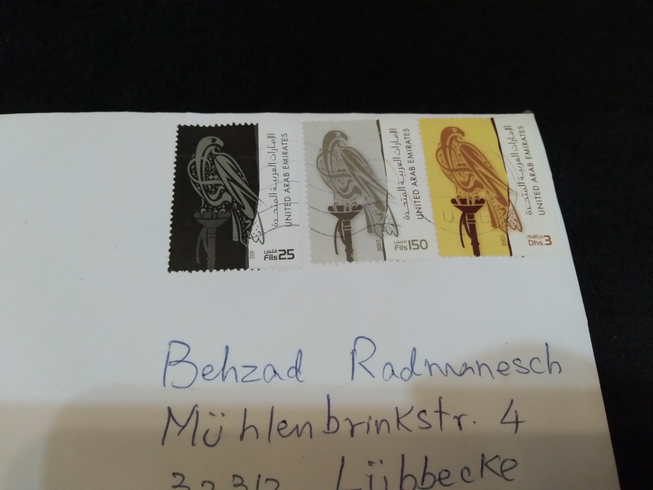 پاکت پستی با 3 تمبر کمیاب و ارزشمند امارات