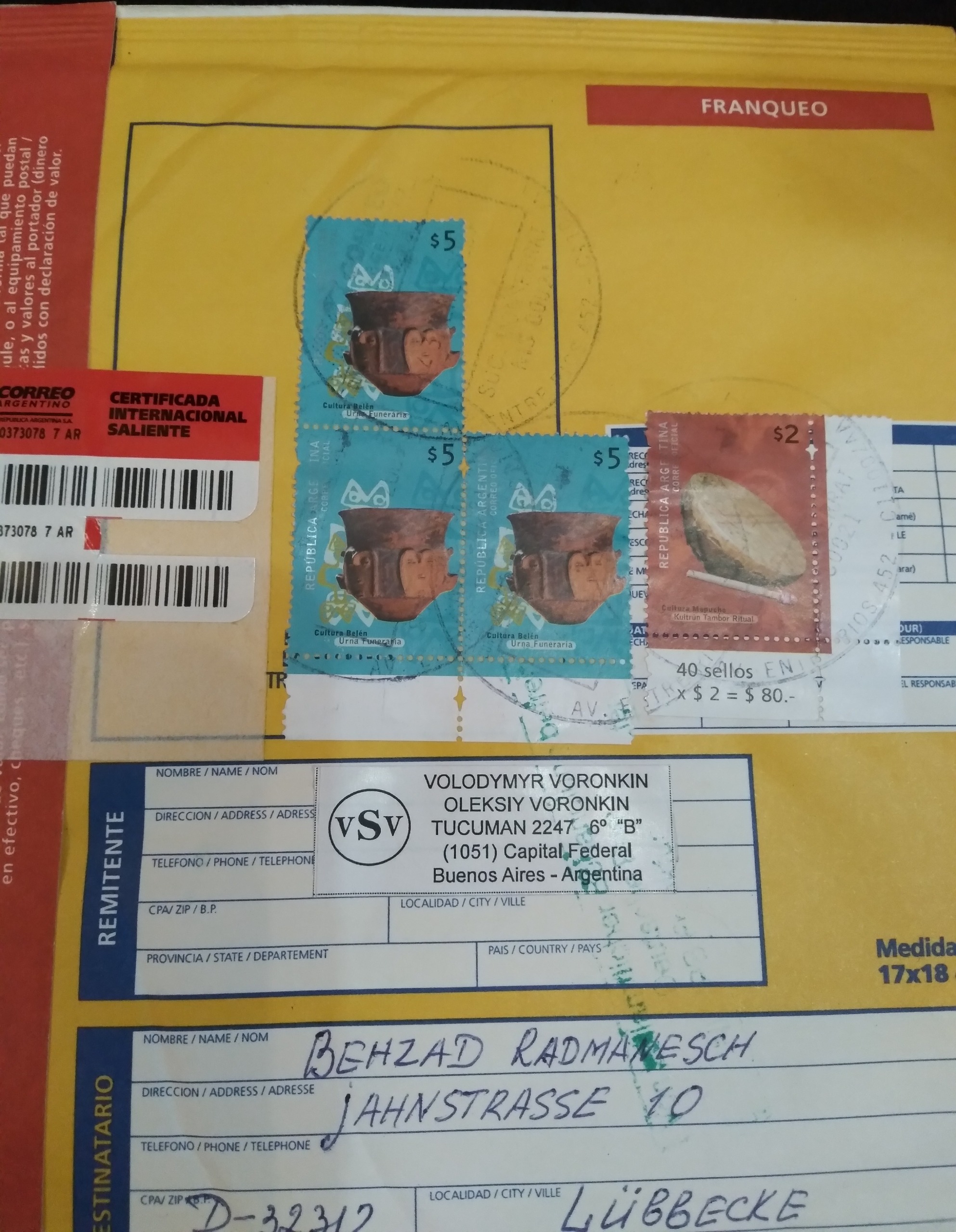 پاکت پستی ارزشمند با 4 عدد تمبر آرژانتین