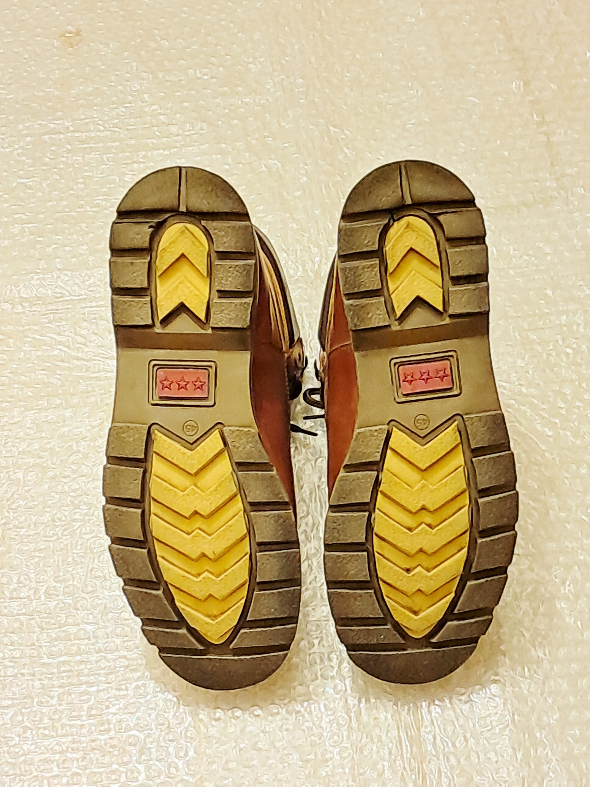 کاملا در حد آک، ساخت کفش کفش ملی، رنگ عسلی، جدید ساخت، بو نویی هم کاملا میده، همین الان قیمتش تو ملی 4850 هست تو تاریخ آبان 1404، کفه کاملا سالم و بدون پوسیدگی است، عکس بزرگ گزاشتم، سایز این کفش کاملا معمولی هست و برای سایز پای 45 هست