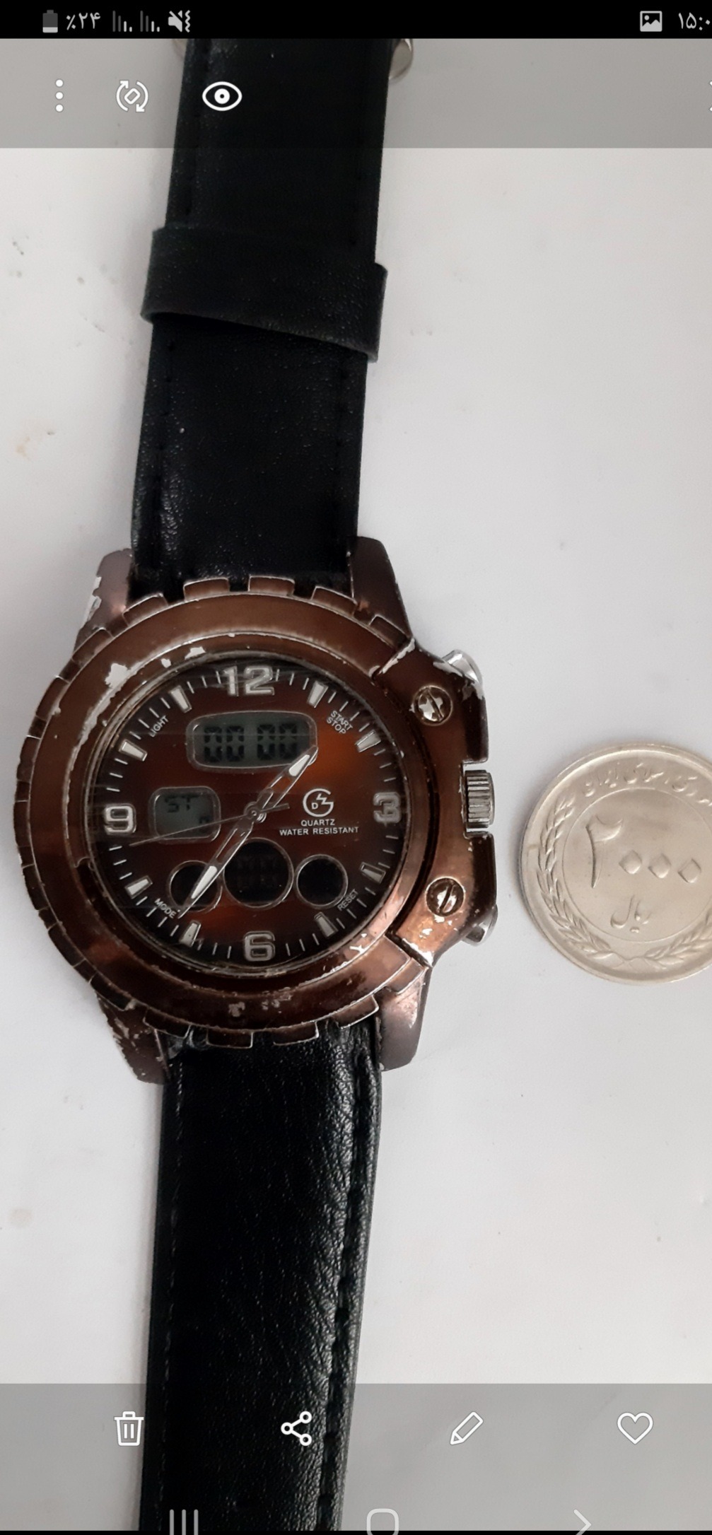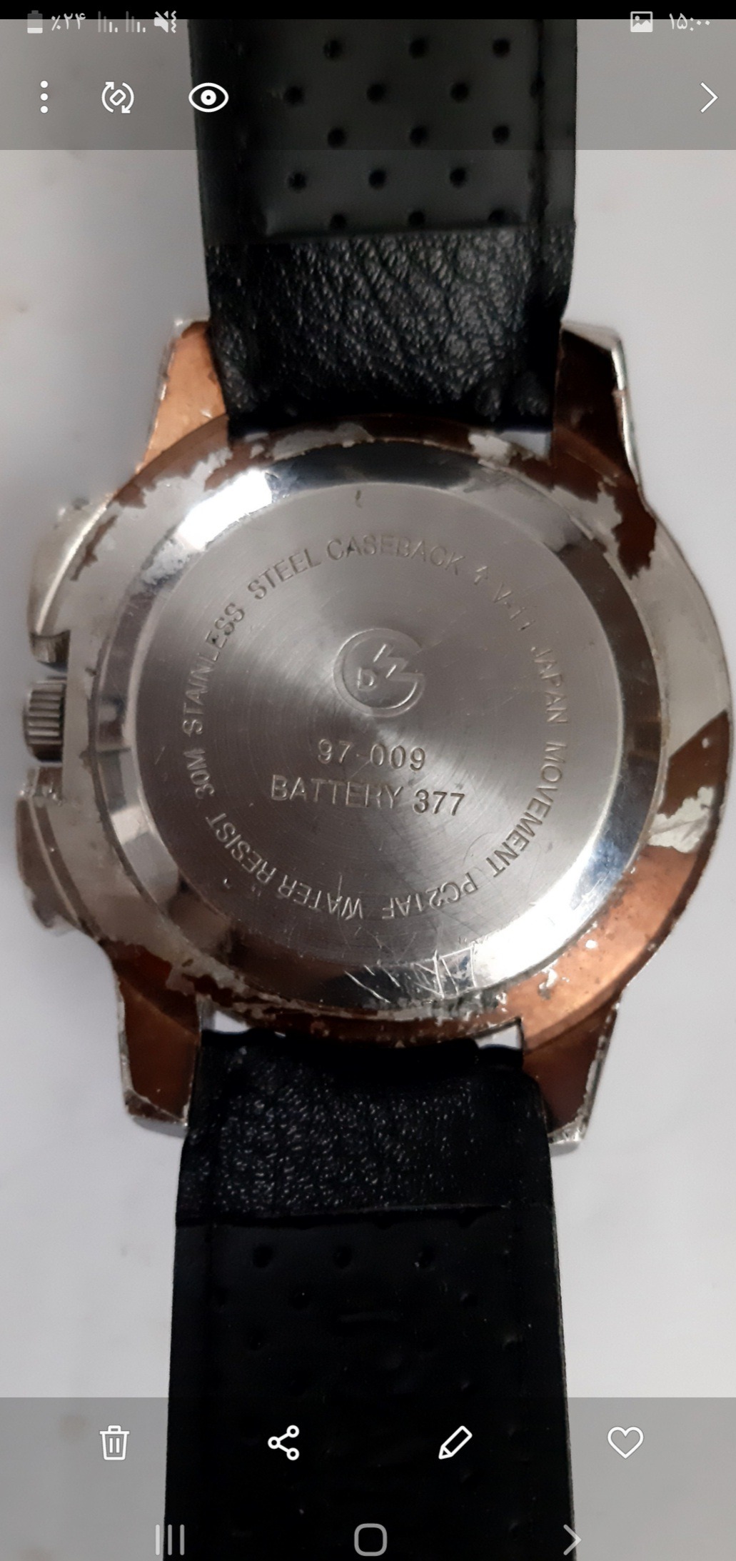 طبیعتا ساعت دست دوم هست و ممکنه خطوخش و رنگ رفتگی و خوردگی و غیره داشته باشه