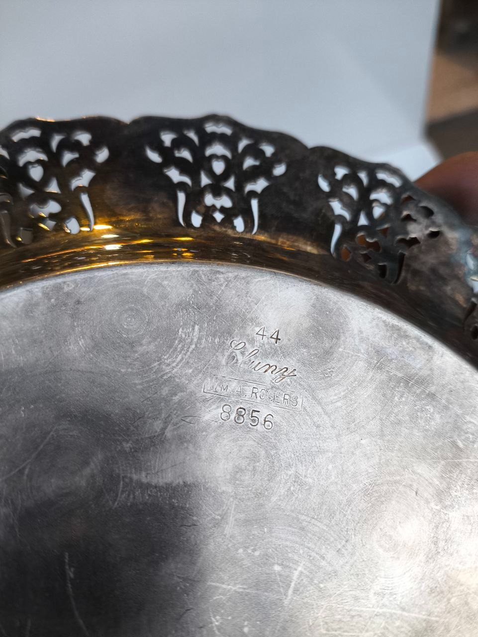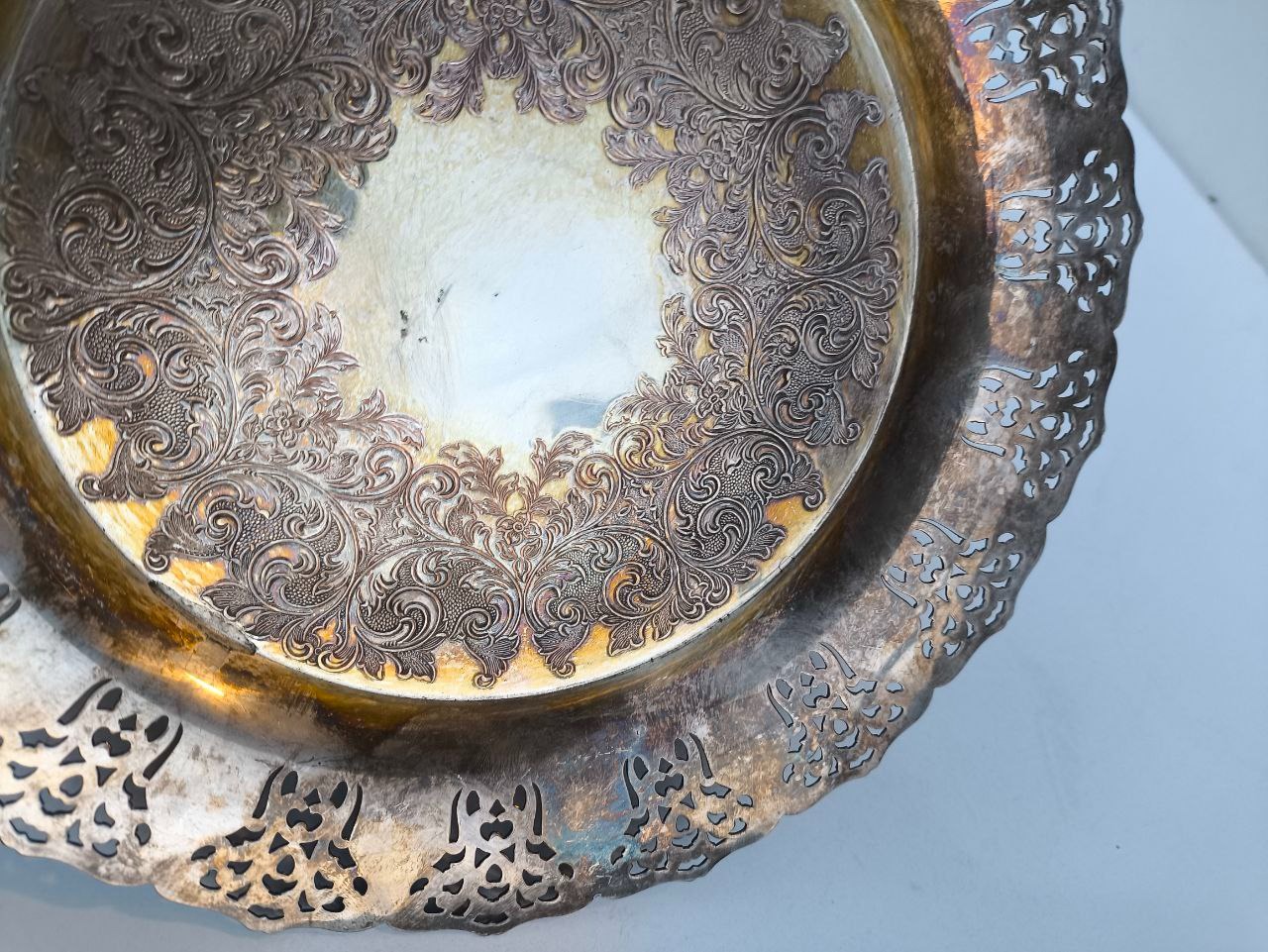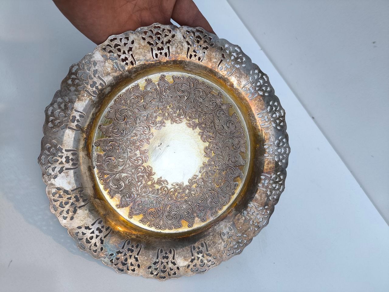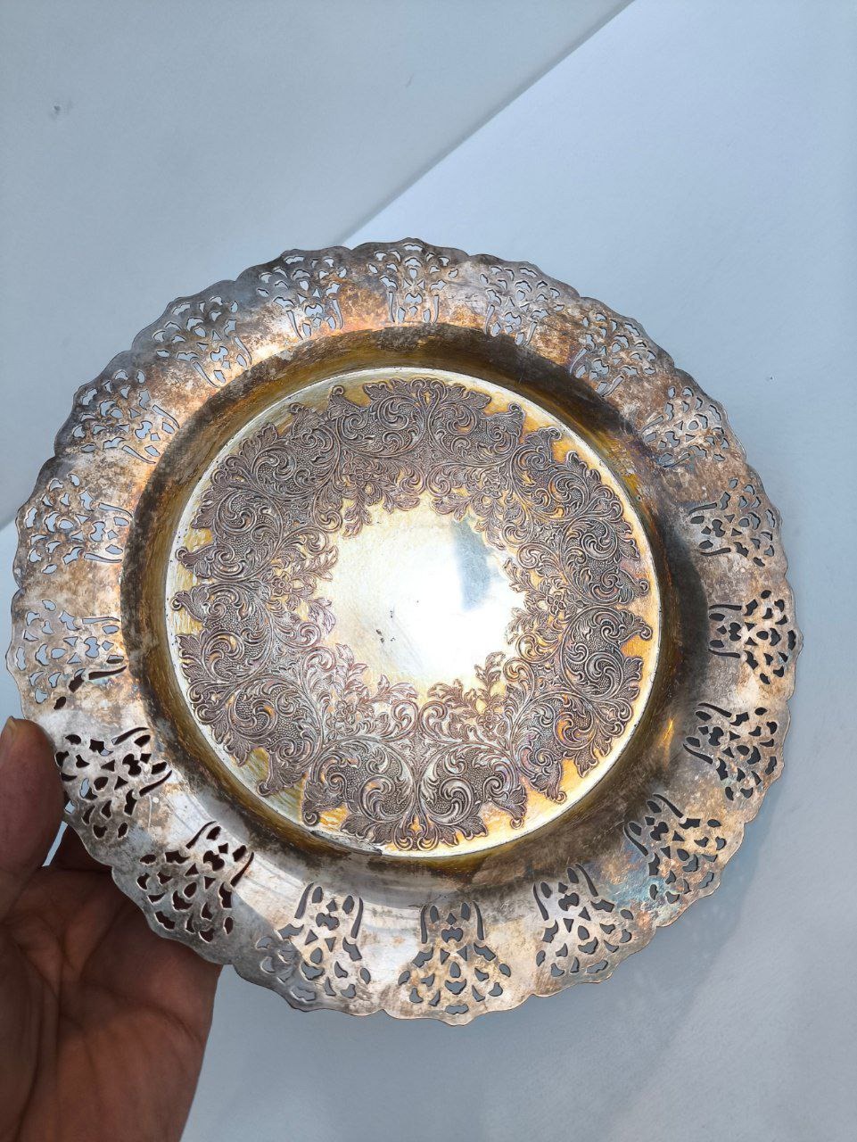 1- سینی دور توری و شبکه سیلور پلیت راجرز کانادا. کار بسیار زیبا و پرکار و تمیز و سالم قطر 24. قیمت عالی فقط