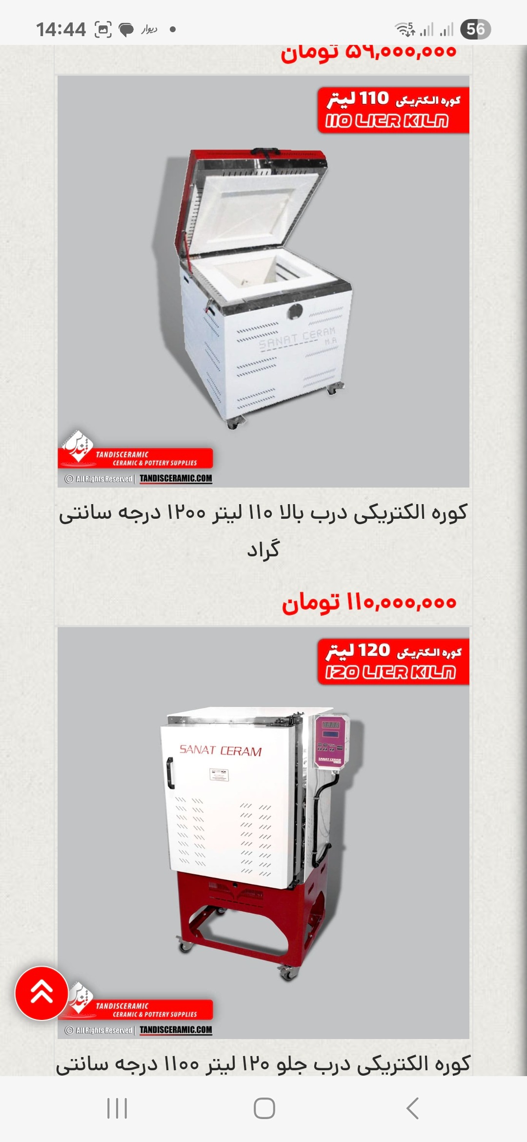 قیمت کوره نو 1200 درجه صنعت صرام 110 میلیون است