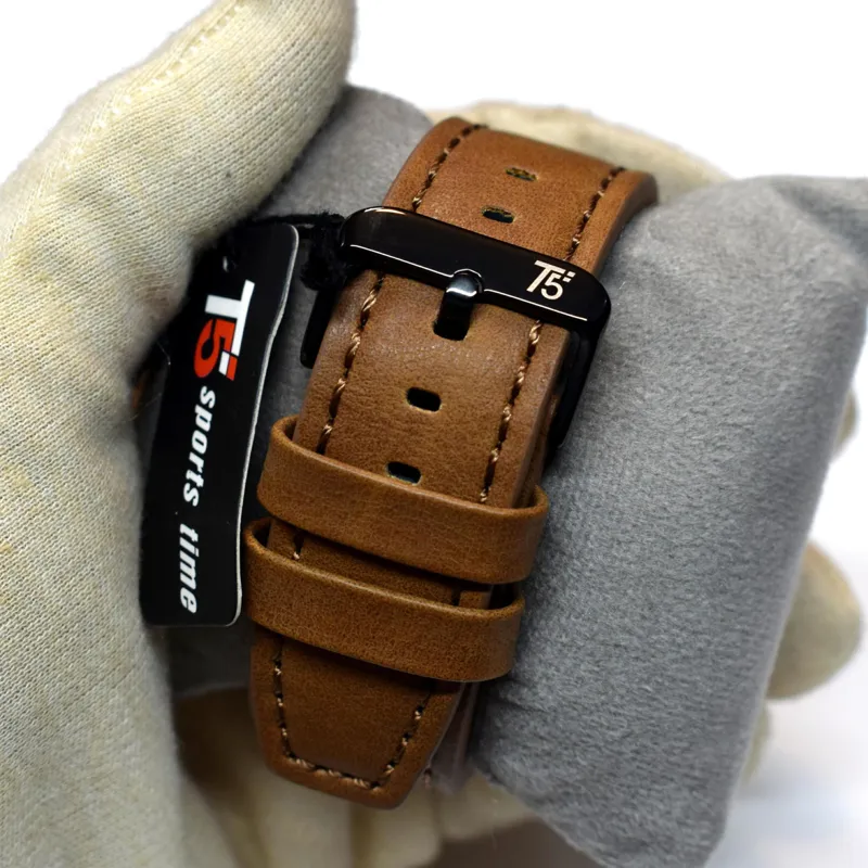 ساعت T5 کرنوگراف سه موتوره بند چرم اصل