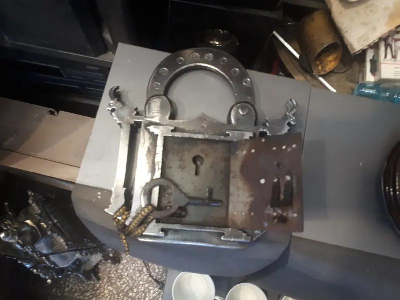 قفل فولادی وقدیمی دست ساز کلکسیونی بسیار زیبا وکار دست وزن قفل بالای یک کیلووکاری منحصربه فرد وبی نظیر هست