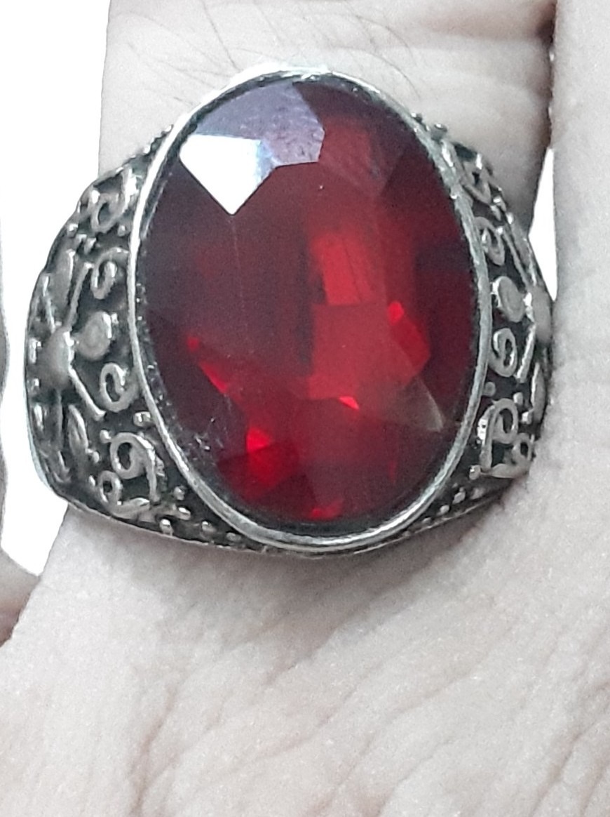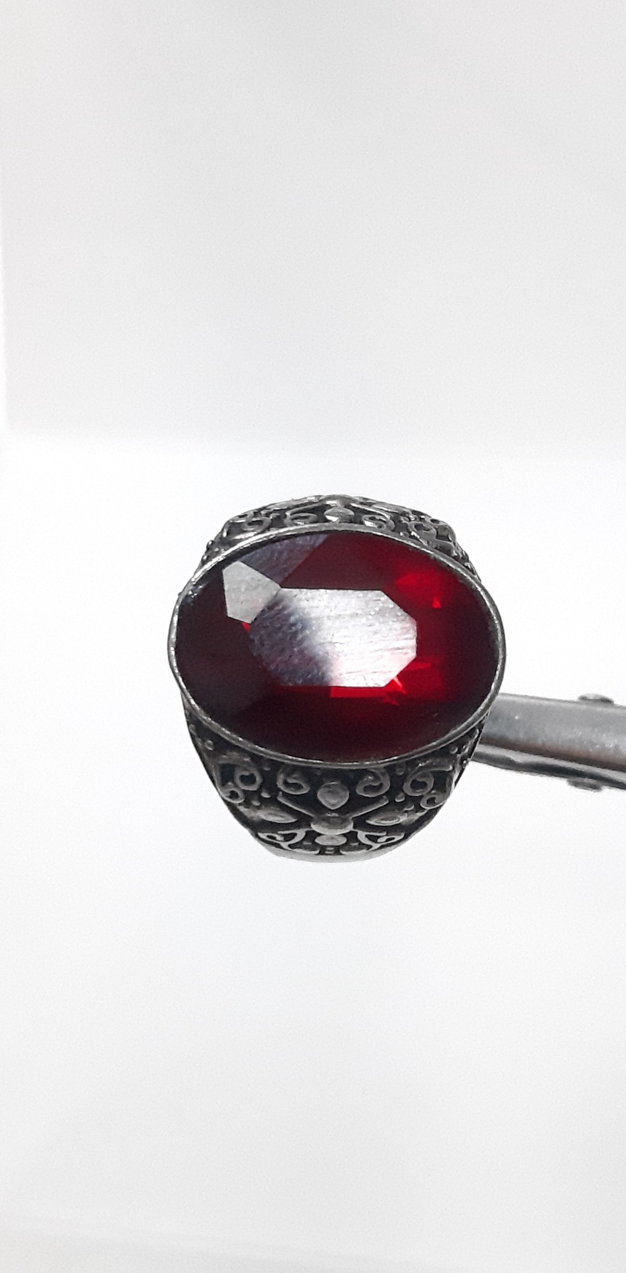 نگین سرخ براق ، رکاب طرح دار رنگ ثابت