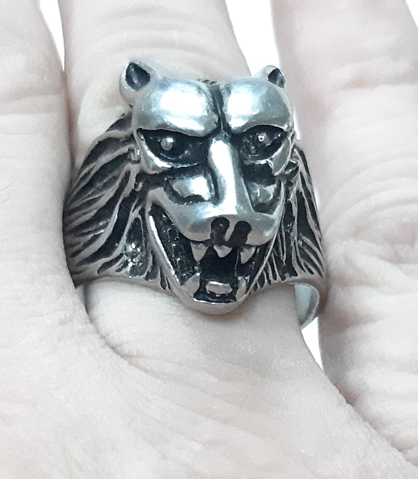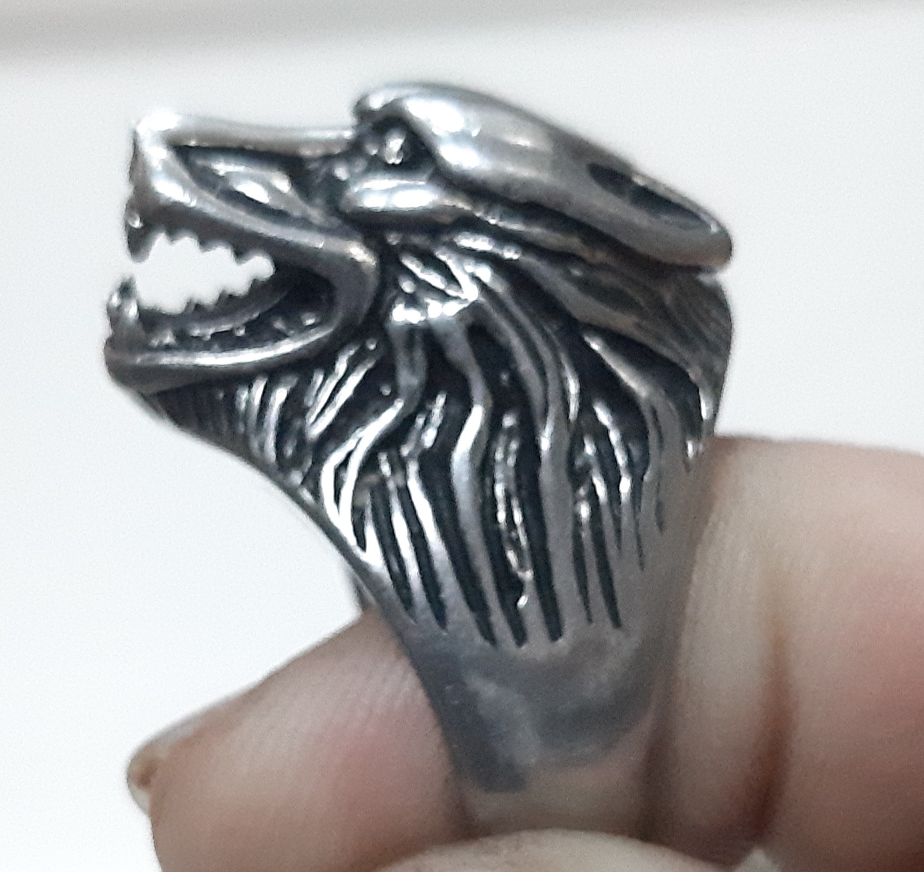انگشتر خاص نقره ای رخ گرگ ،استیل رنگ ثابت.
