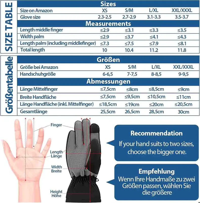 ضد آب و ضد باد- سطح بیرونی دستکش های گرم شده از برزنت ساخته شده است که می توان از باران و برف خفیف جلوگیری کرد. علاوه بر این، یک لایه ضد آب در داخل دستکش وجود دارد، حتی اگر دستکش را در آب فرو کنید، دست شما خیس نمی شود.