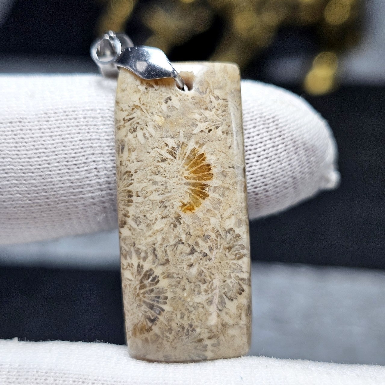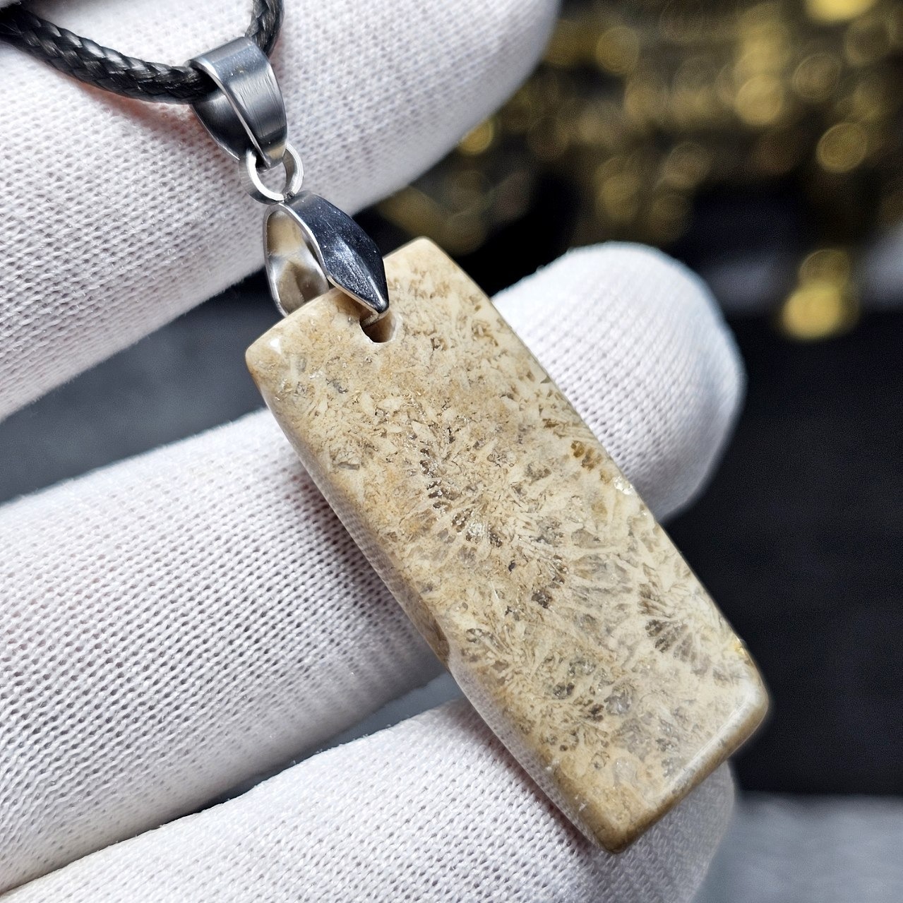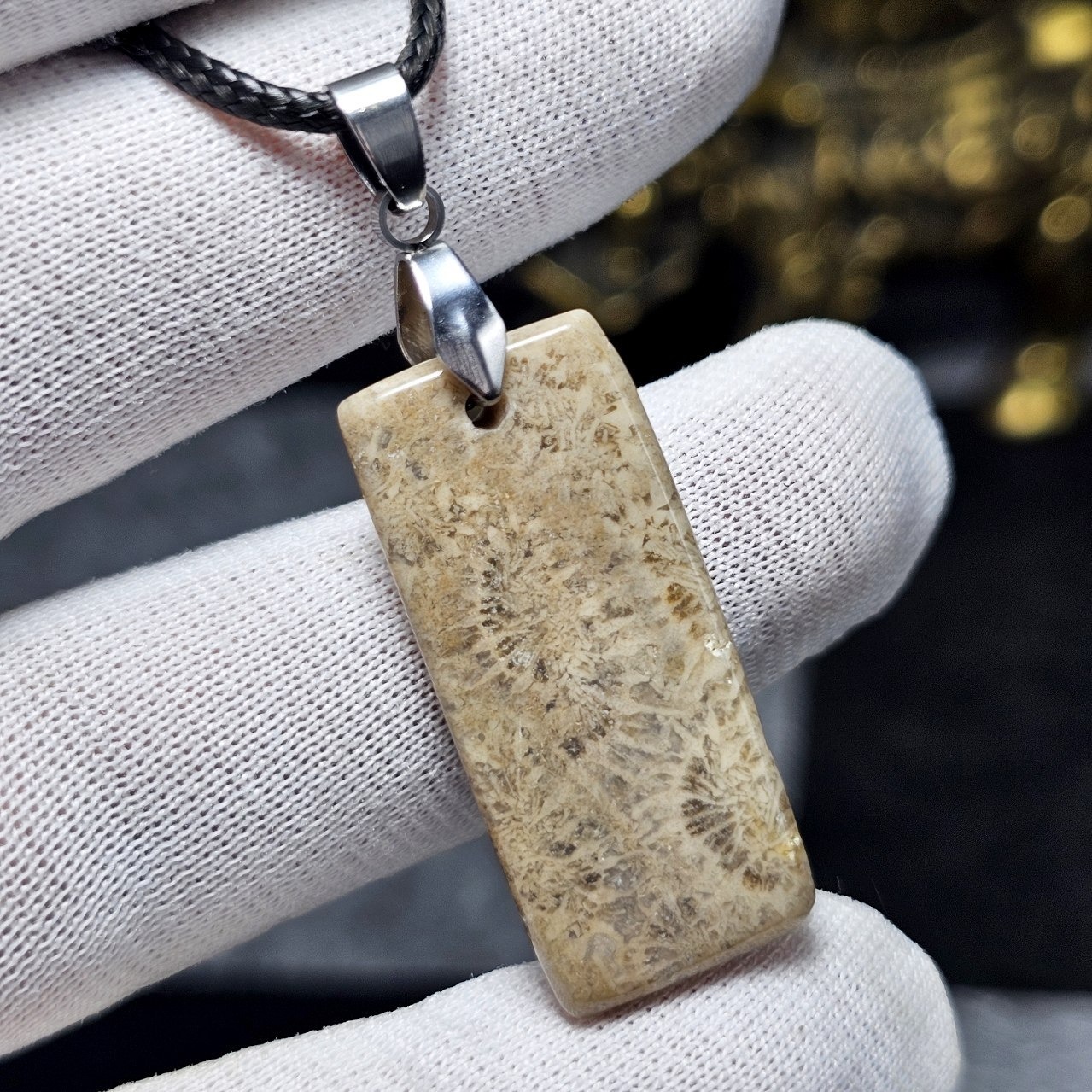 آویز گردنبند سنگ طبیعی فسیل مرجان معدنی