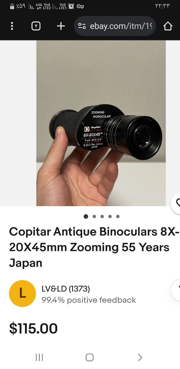 دوربین شکاری مارک معروف کوپیتار ژاپنی اصل با زوم 8 در20در45 مثل ی تلسکوپ عمل میکنه