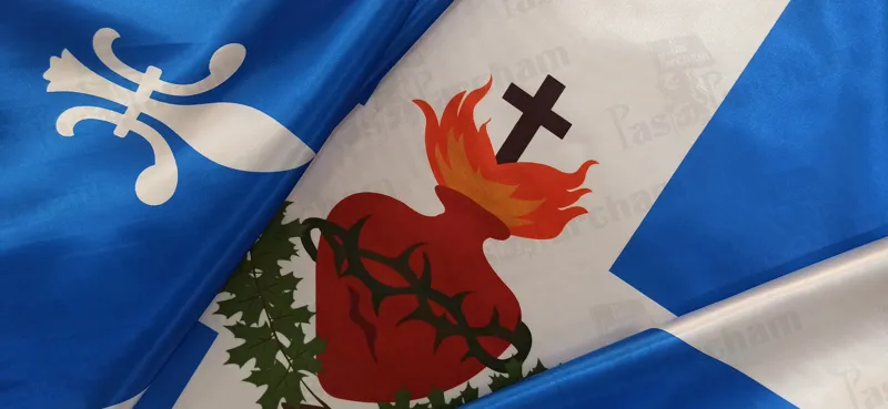 قلب مقدس مسیح که در میان پرچم قرار دارد نشانه باور مردم کبک به مسیحیت شاخه کاتولیک است. رنگ آبی نیز از قرون وسطی به فرانسه مربوط بوده، گل زنبق (fleur de lys) نیز باز از قرون وسطی و از سلطنت خاندان کاپت قرن 12 در دربار فرانسه استفاده میشده و رفته رفته تبدیل به نماد این کشور شد. همچنین این گل نماد حضرت مریم مقدس است و باز به کاتولیک بودن مردم کبک تاکید دارد.