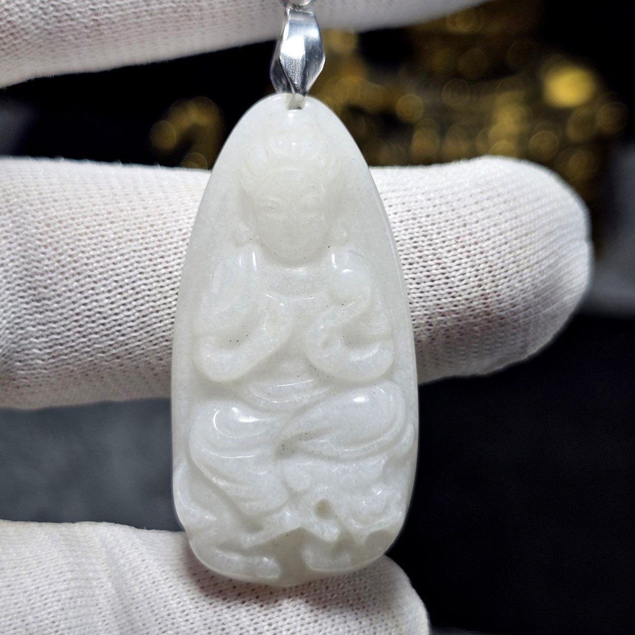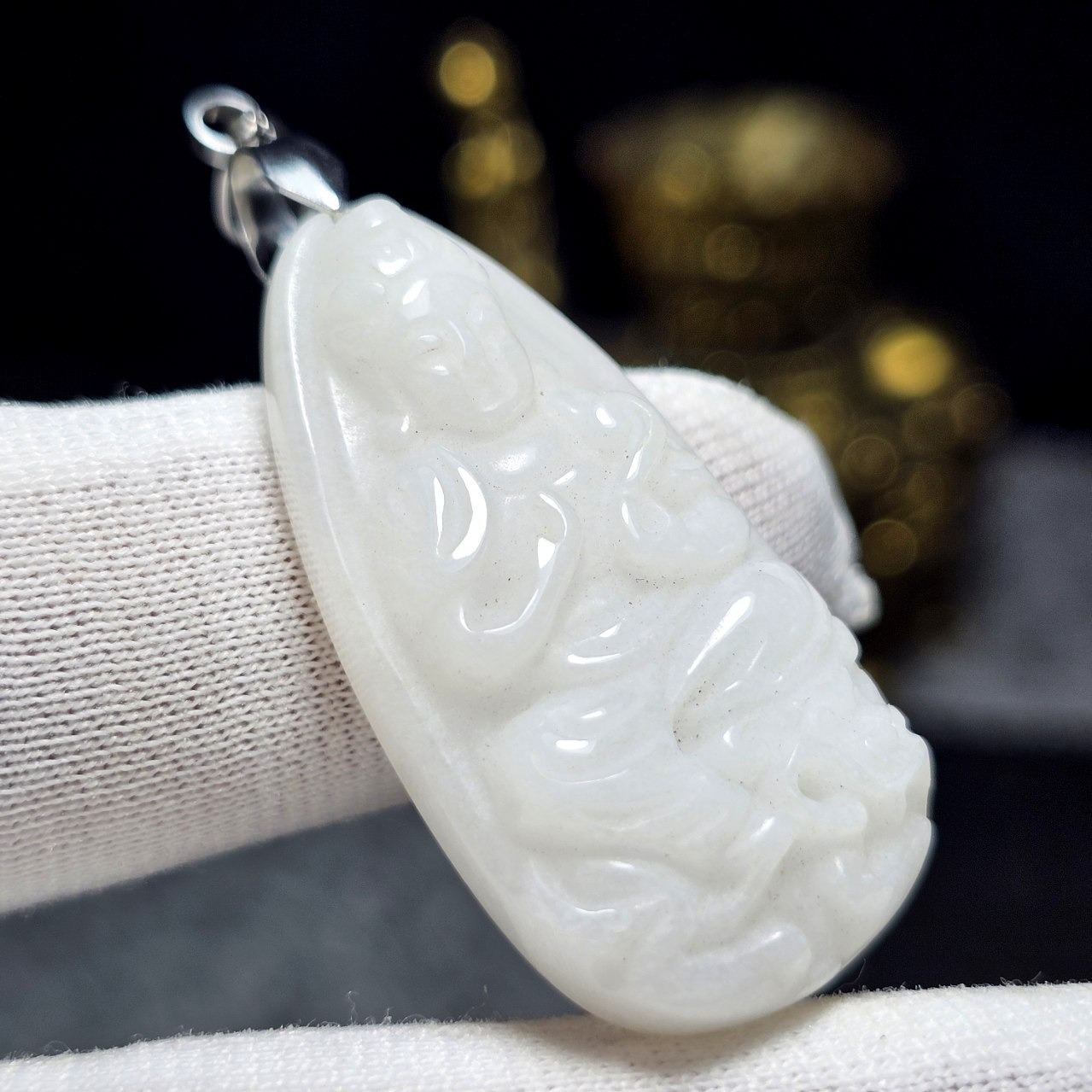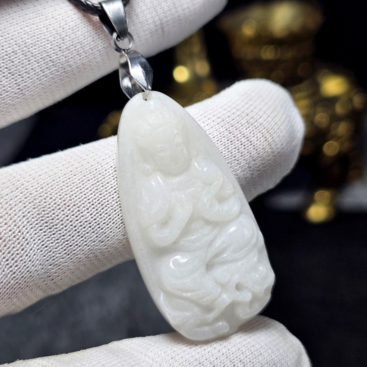 آویز گردنبند سنگ جید سفید معدنی تراش کاروینگ