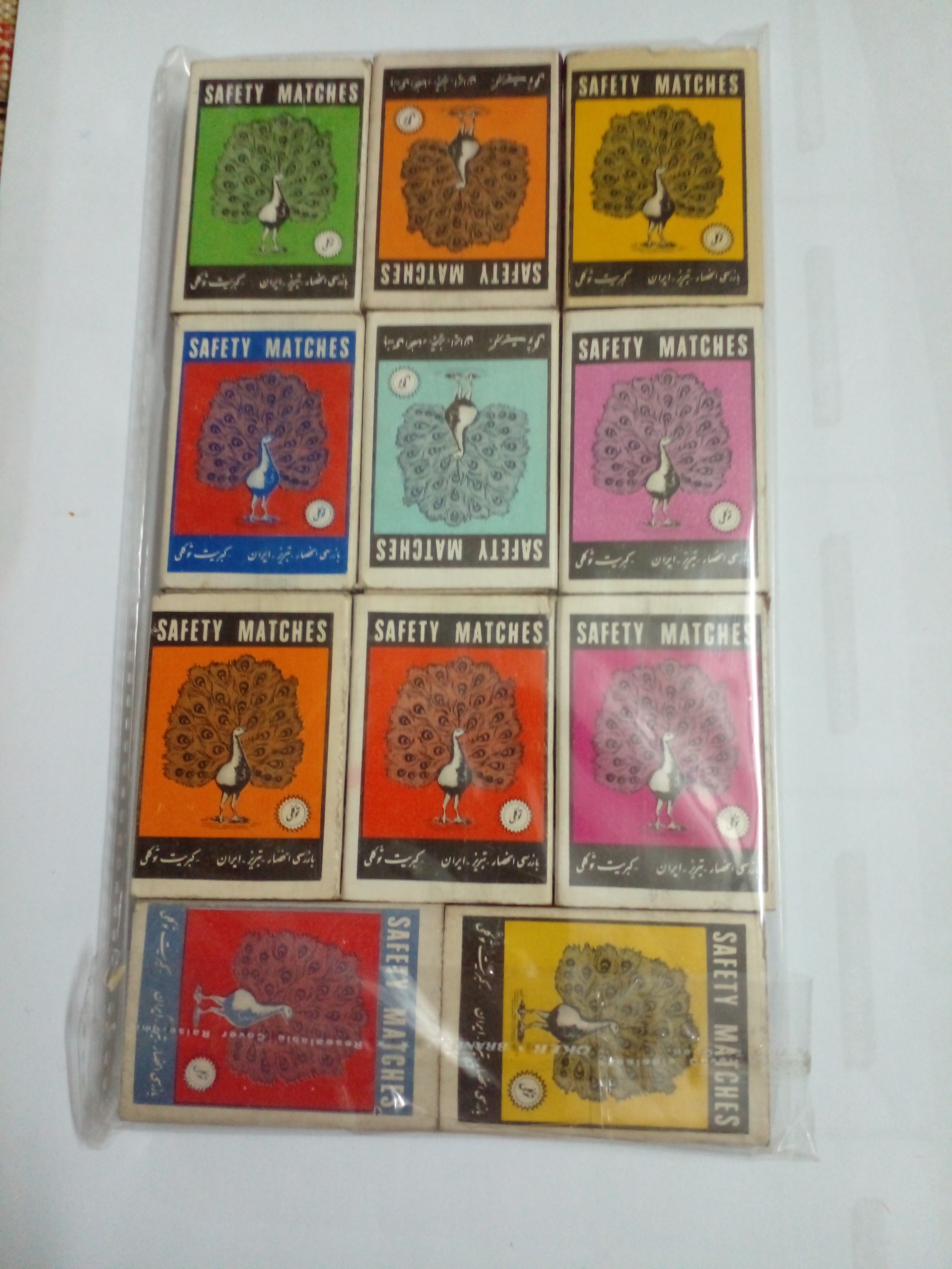 11 عدد کبریت قدیمی و کلکسیونی طاووس نشان زیبا