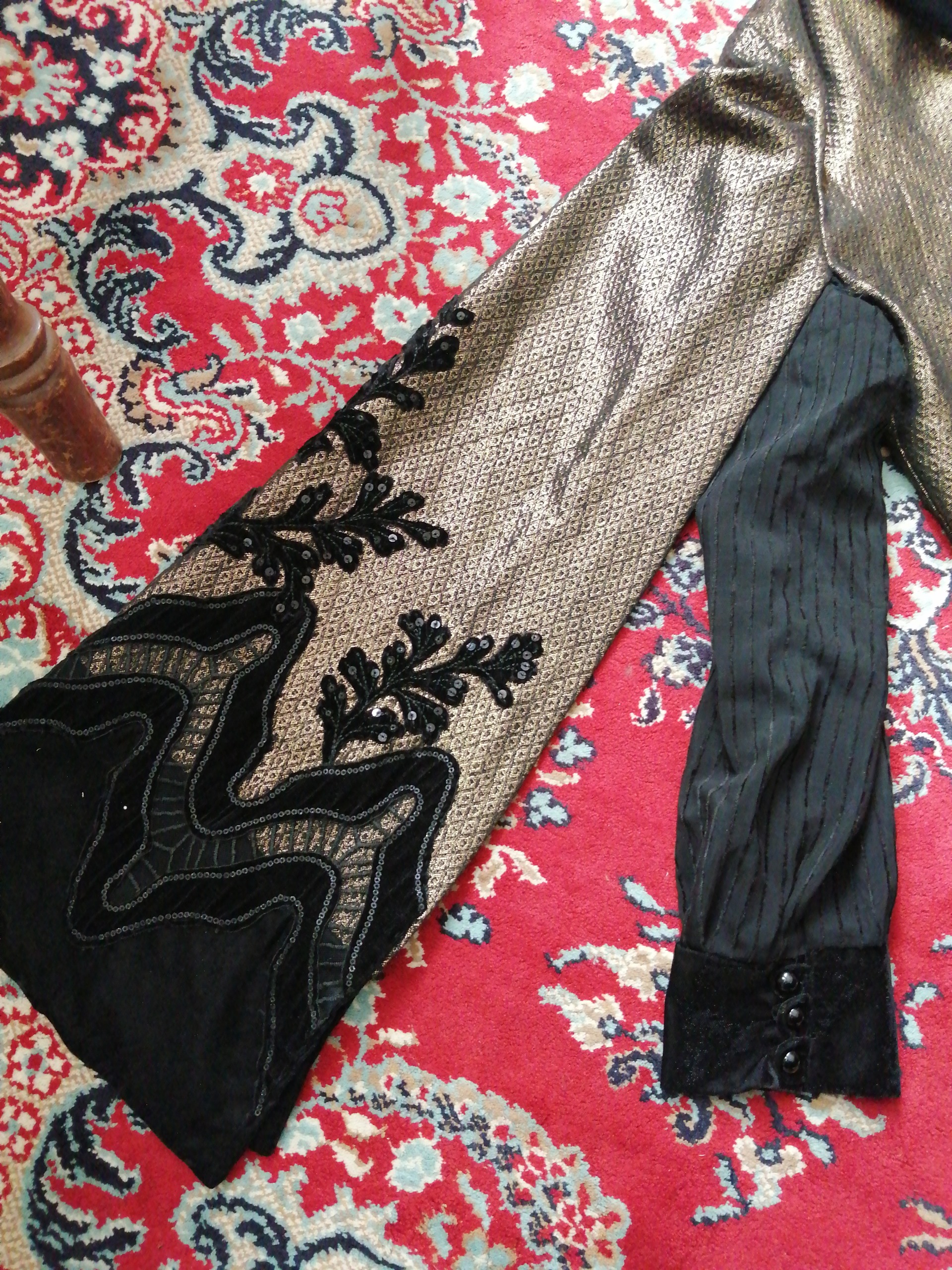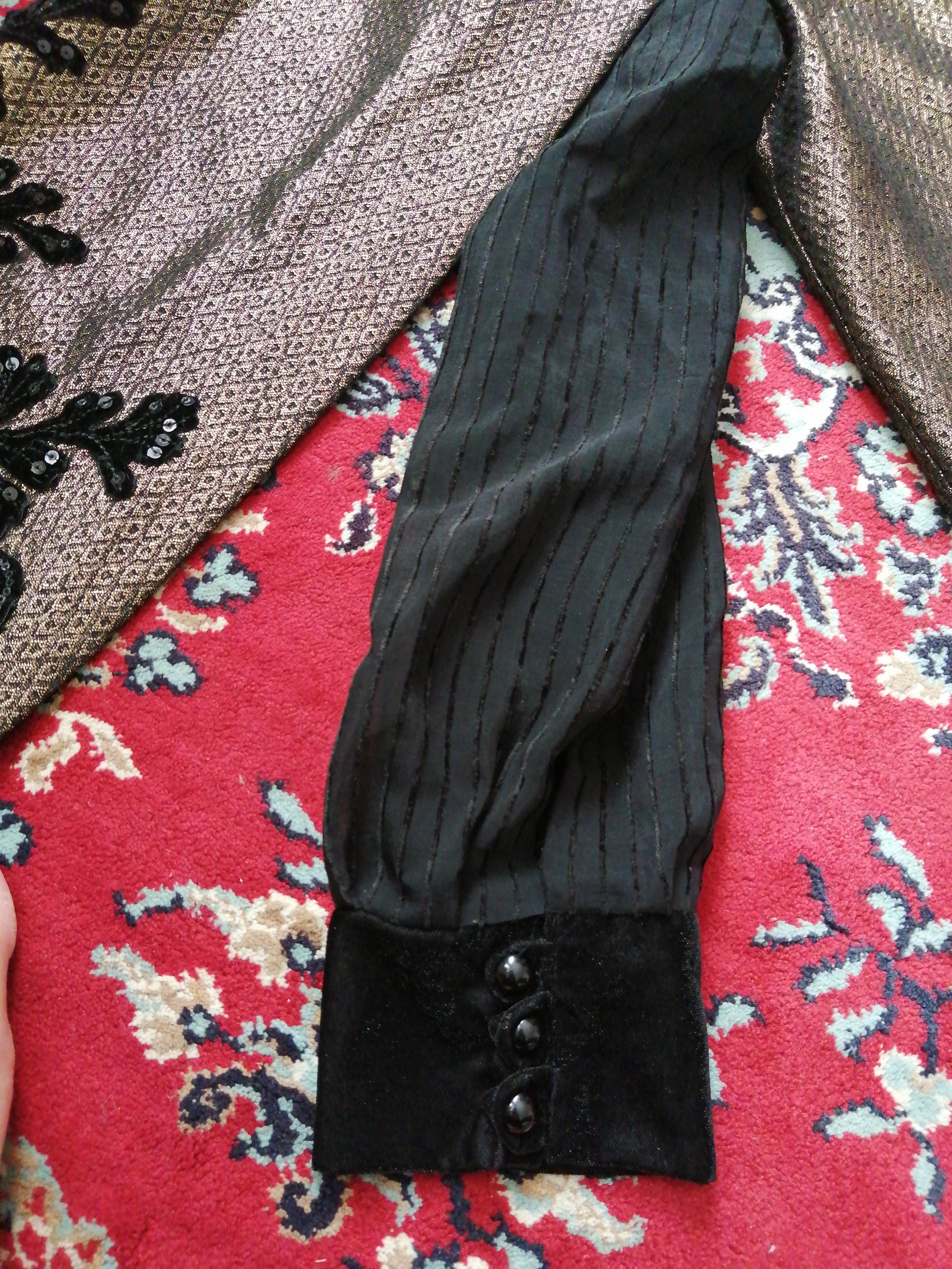 مانتو نو سایز 38تا 40.خیلیی شیک قشنگه مانتو آستین شنلی هست آستینش مخمله شنل که به آستینش وصله اونم مخمله نگین دوزی شده هست یقشم مخمله گره میخوره جنس کار عالیه مناسب مجلس هست کار خییلی شیکیه خودم سه میلیون پانصد دادم