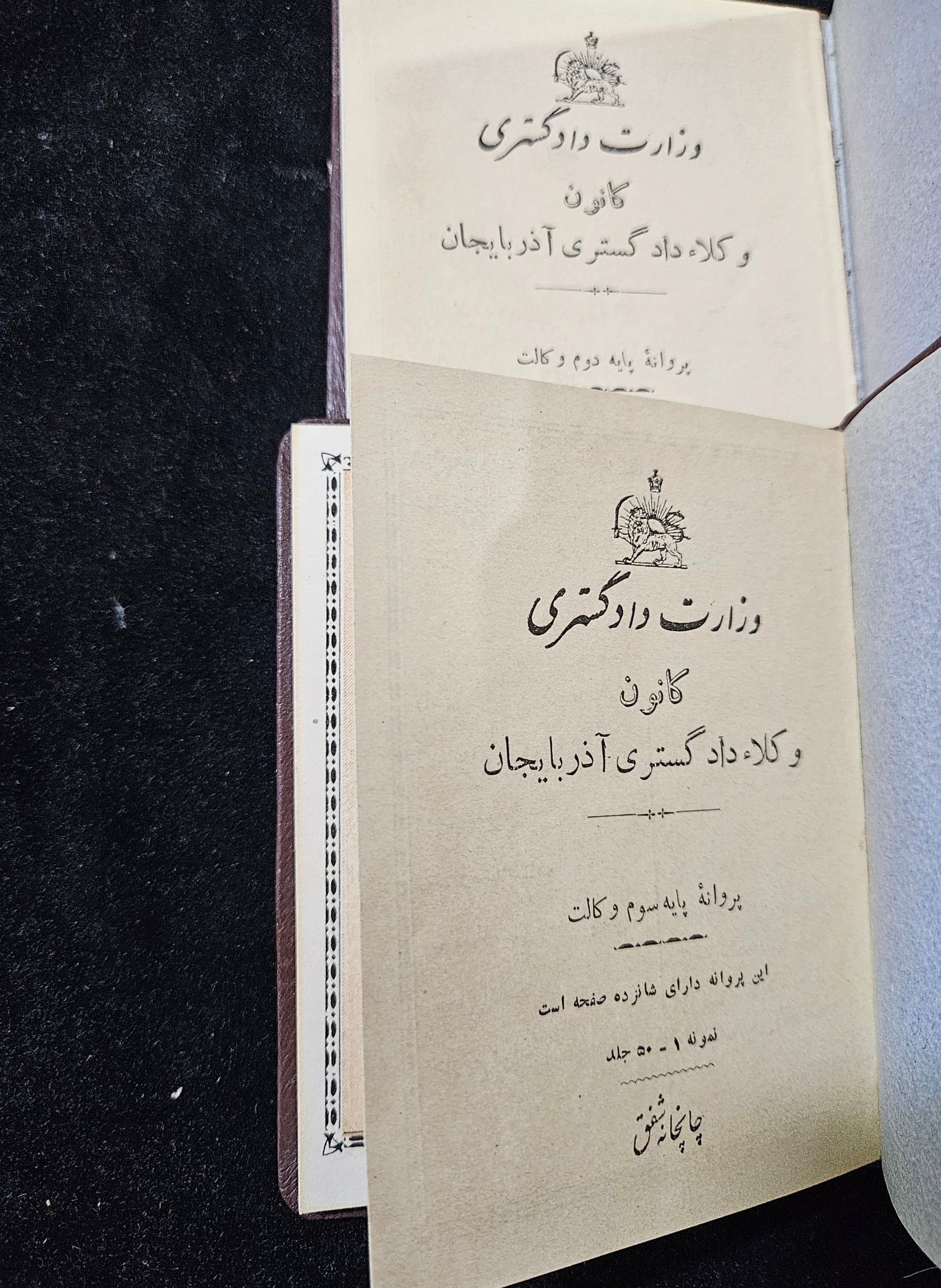 دو دفترچه خام پروانه وکالت دوره شاهنشاهی