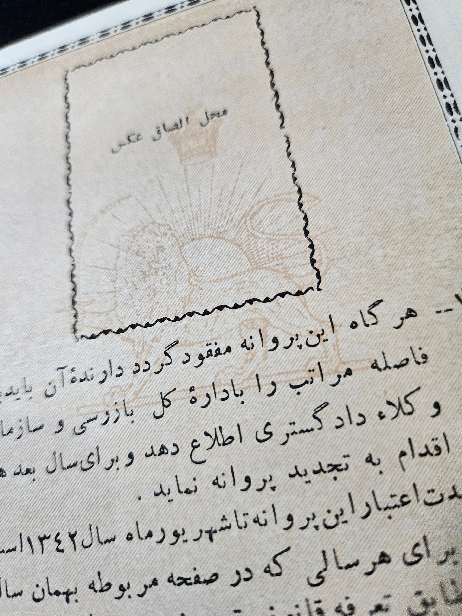 تمامی صفحات با نشان شیروخورشید میباشد جلد چرم حیوانی