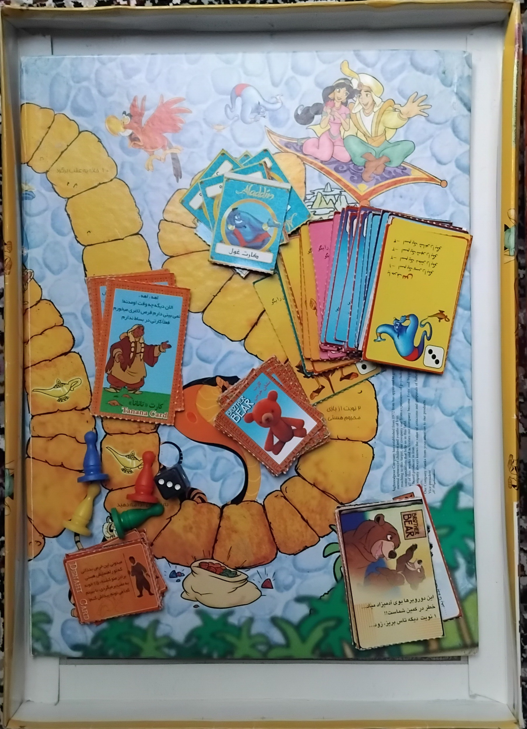 دو بازی در یک بسته،وسایل بازی آن بدون کسری به جز سی دی کارتون آن موجود نمیباشد و بخاطر قدیمی بودن آن بعضی کارت ها و صفحه بازی و جعبه آن حالت خمیدگی پیدا کرده.