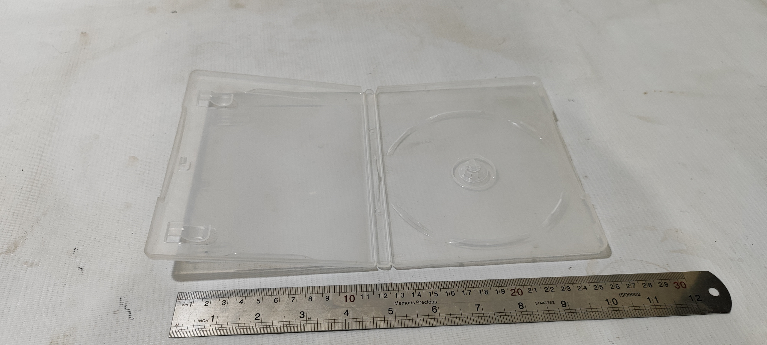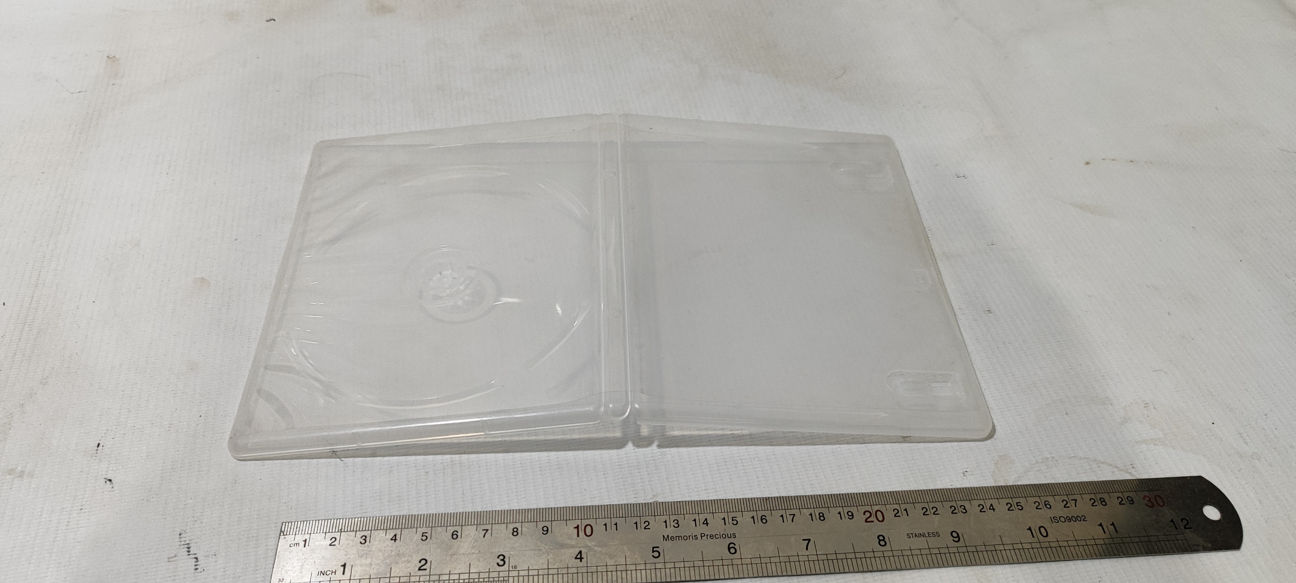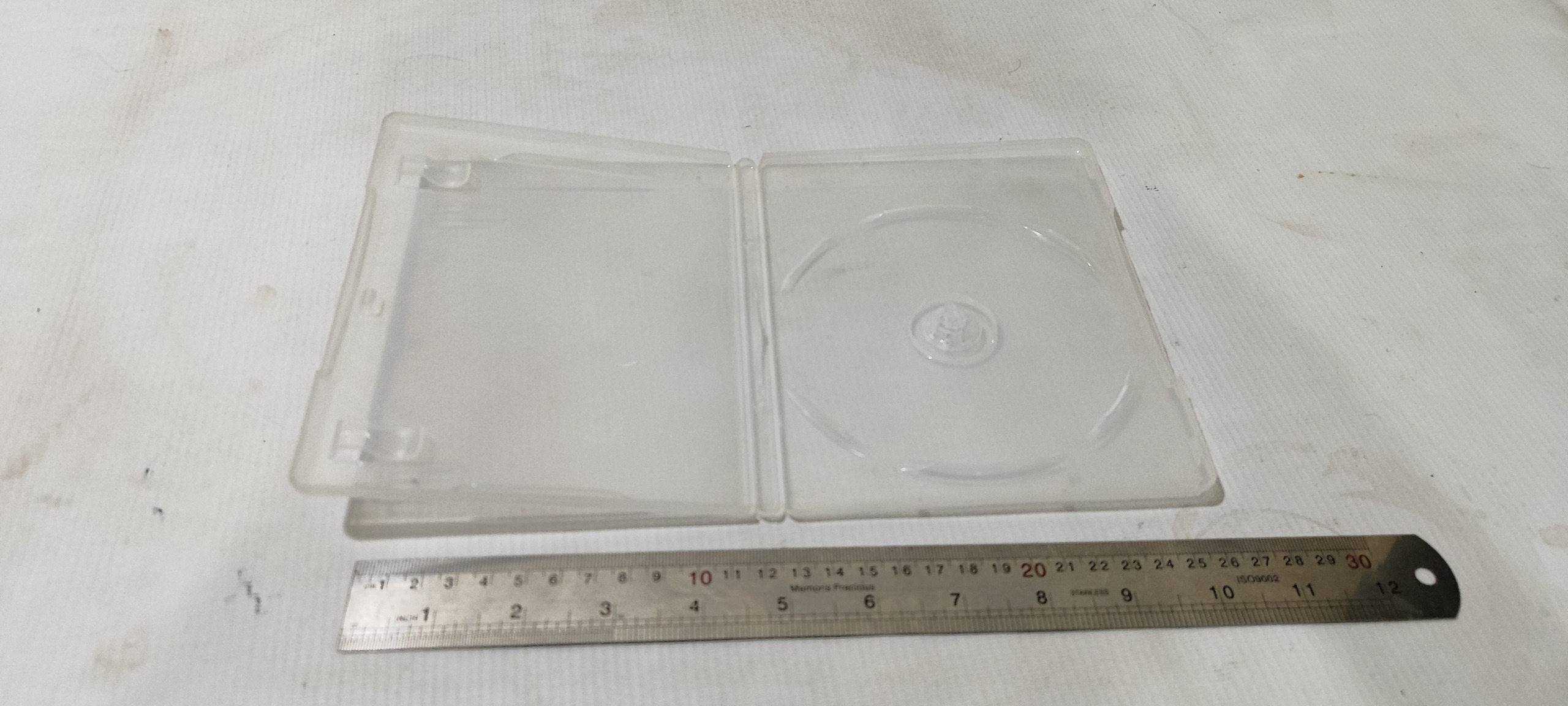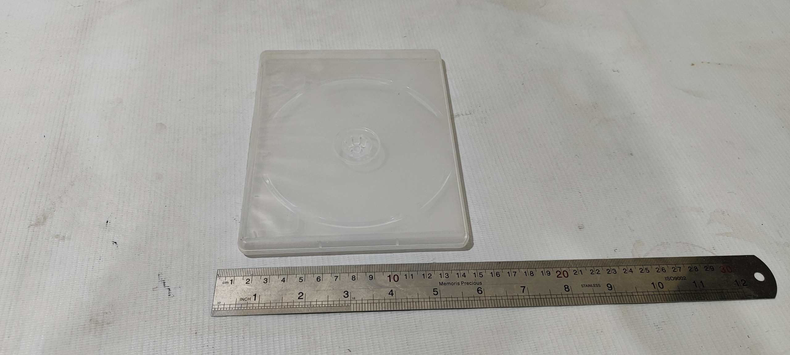 قاب بلوری شفاف که بصورت سفید و از مواد درجه یک پلی استر در تولیدات استفاده شده که با امکان جایگذاری یک حلقه CD یا DVD طراحی شده است ،