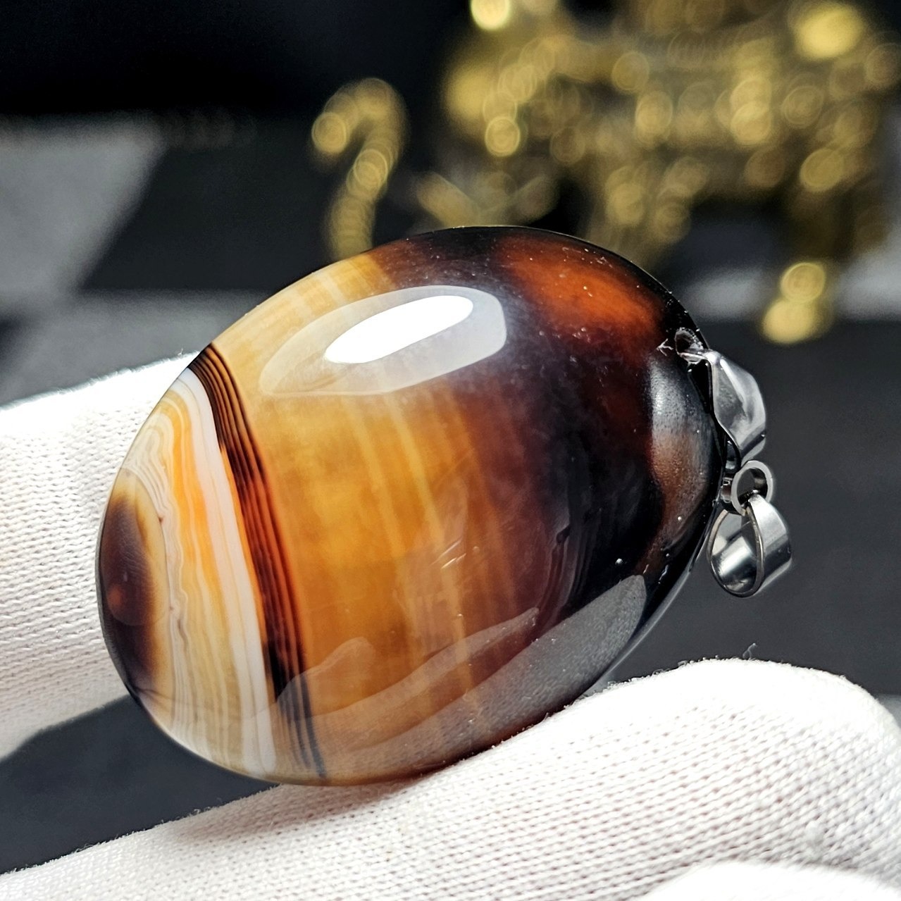 آویز گردنبند درشت سنگ عقیق سلیمانی معدنی