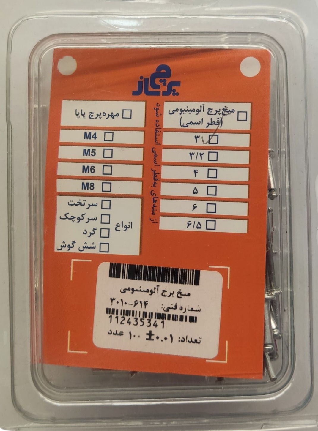 نوع کالا | میخ پرچ |