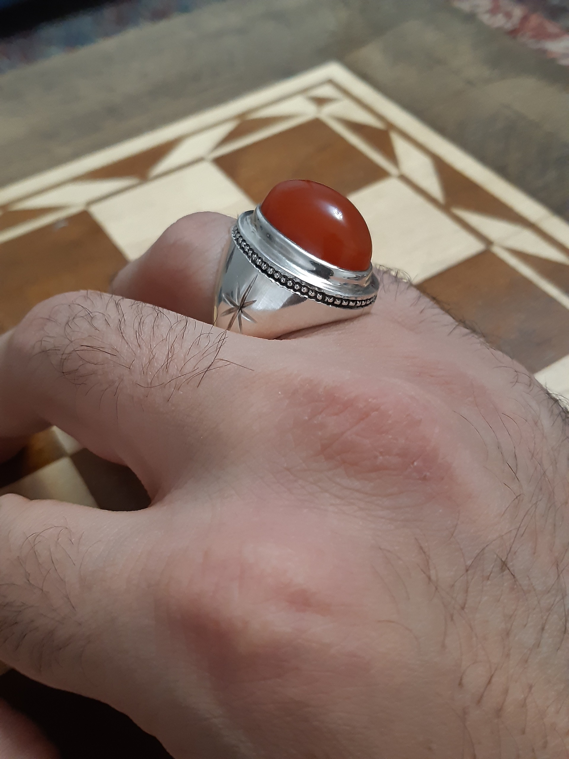 انگشتر عقیق پرتقالی دستساز 925 عقیق کنه