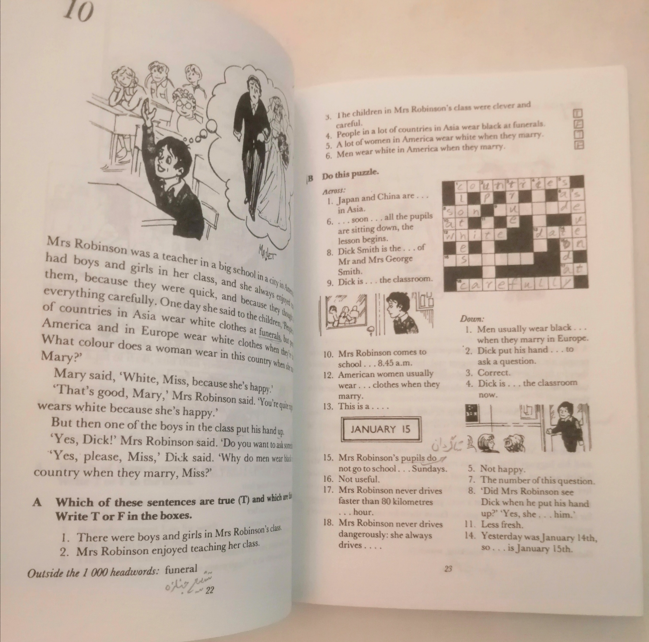 کتاب کاملا سالم است فقط در تعدادی از صفحات جواب سؤالات با مداد نوشته شده است.