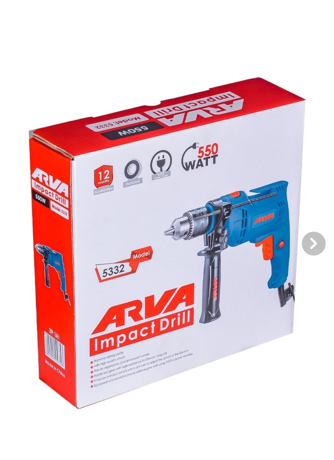 دریل چکشی آروا قدرت 550 وات آروا مدل 5332 سایز 13 میلیمتر آچاری
