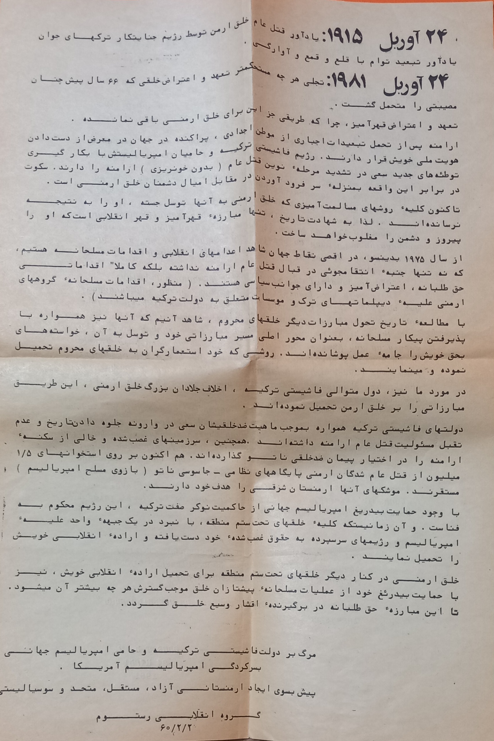 اعلامیه دوزبانه ارمنی و فارسی 1360