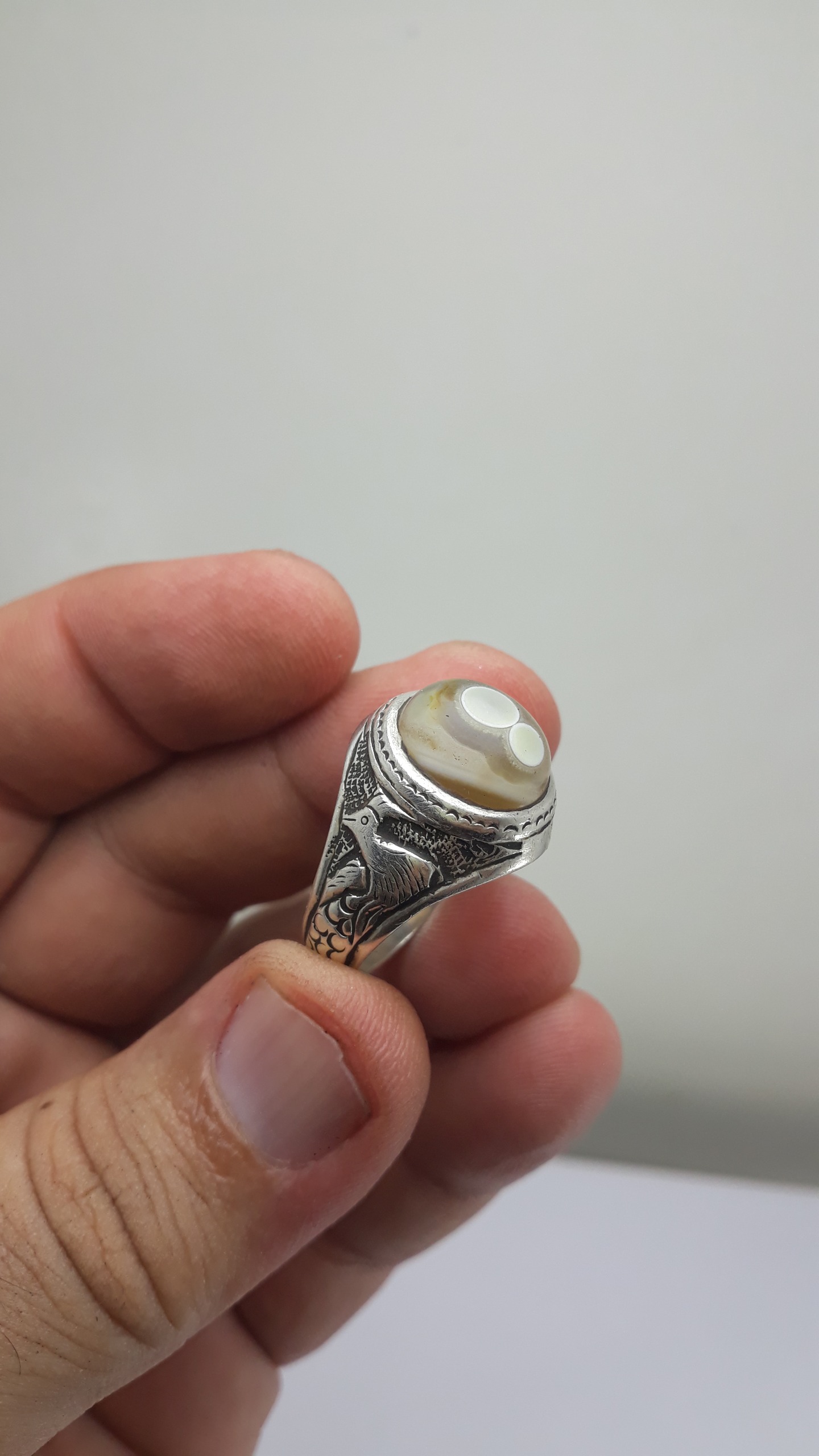 انگشتر نقره دست ساز قلم کاری کهنه باباقوری