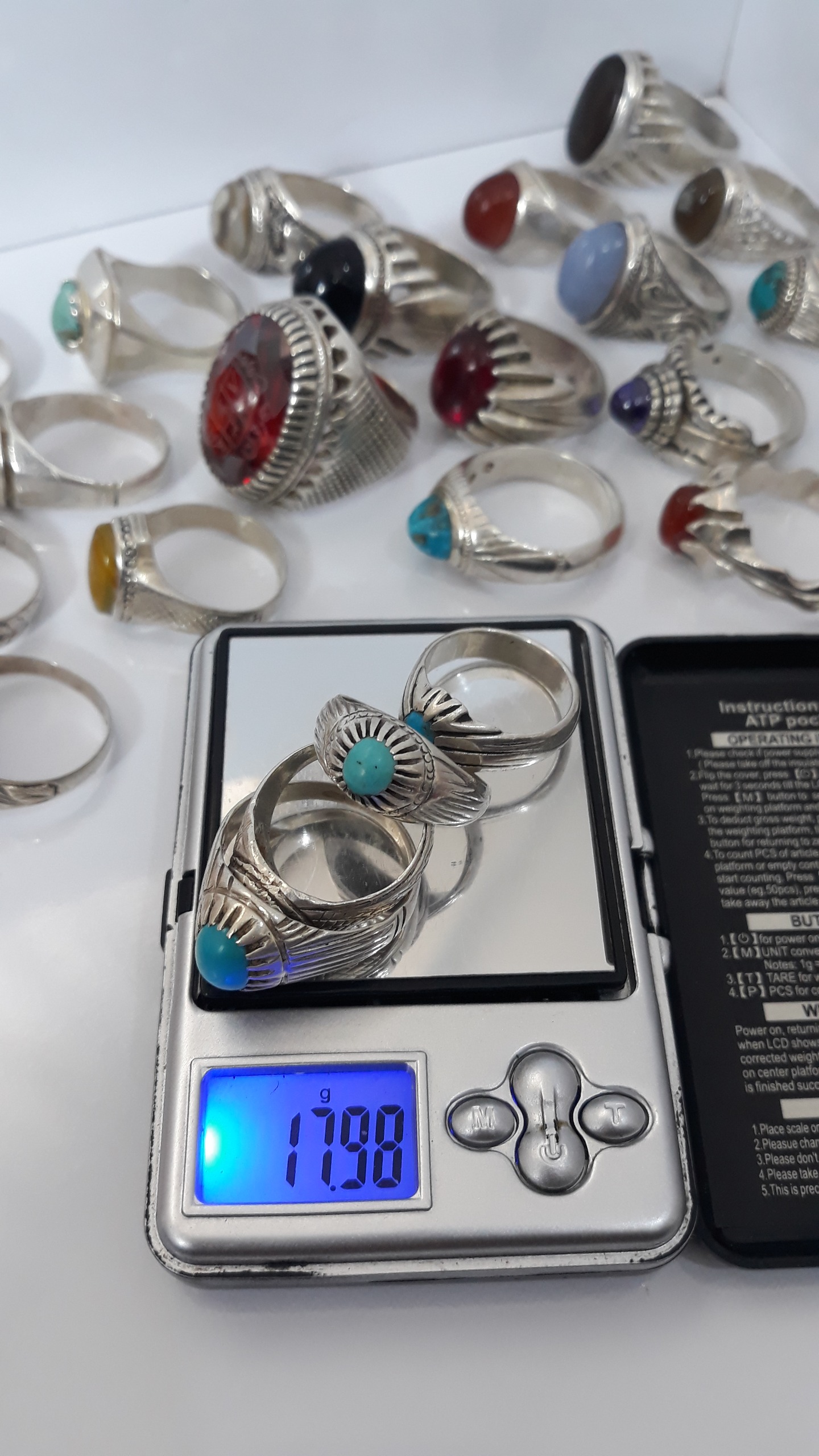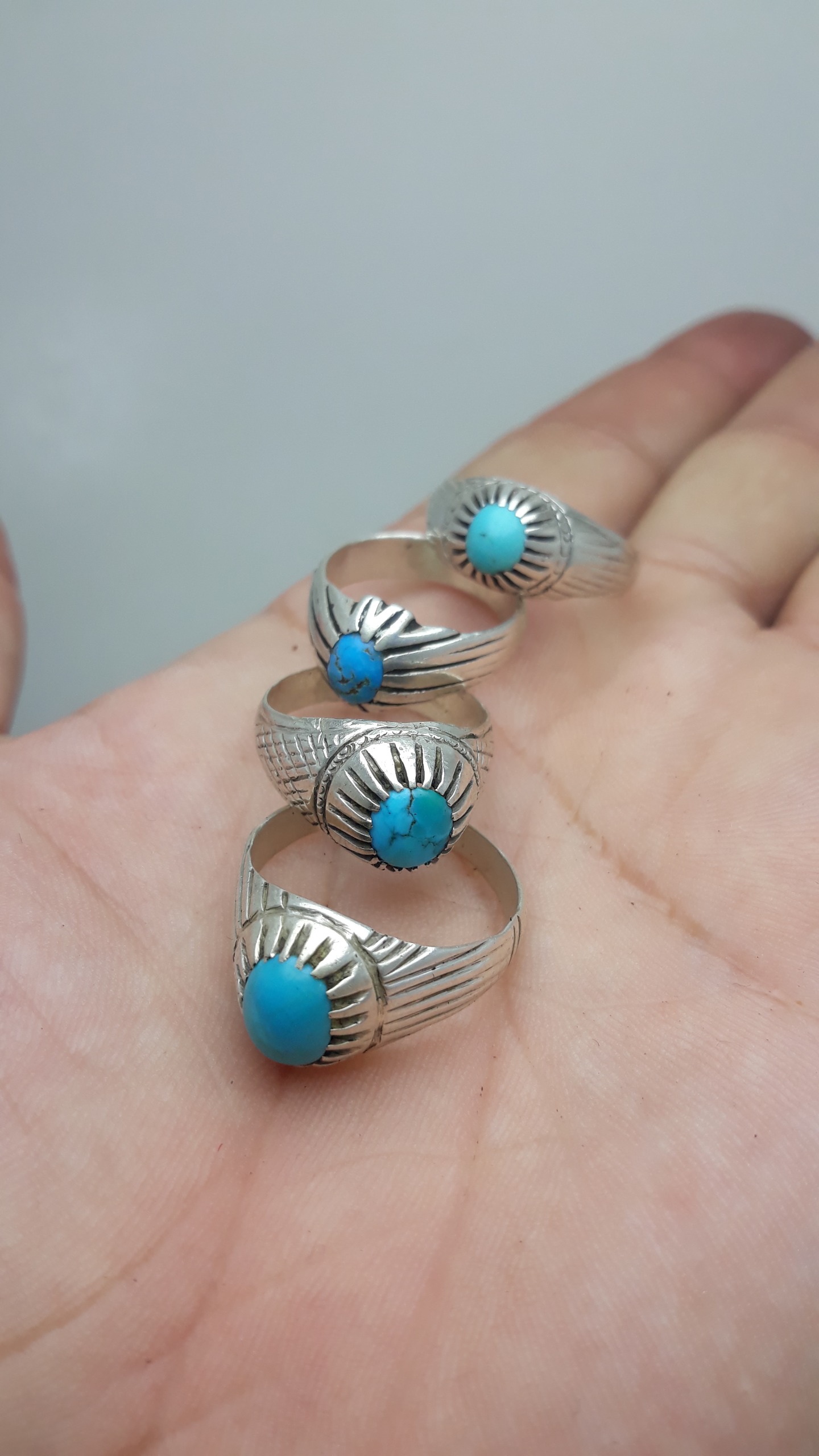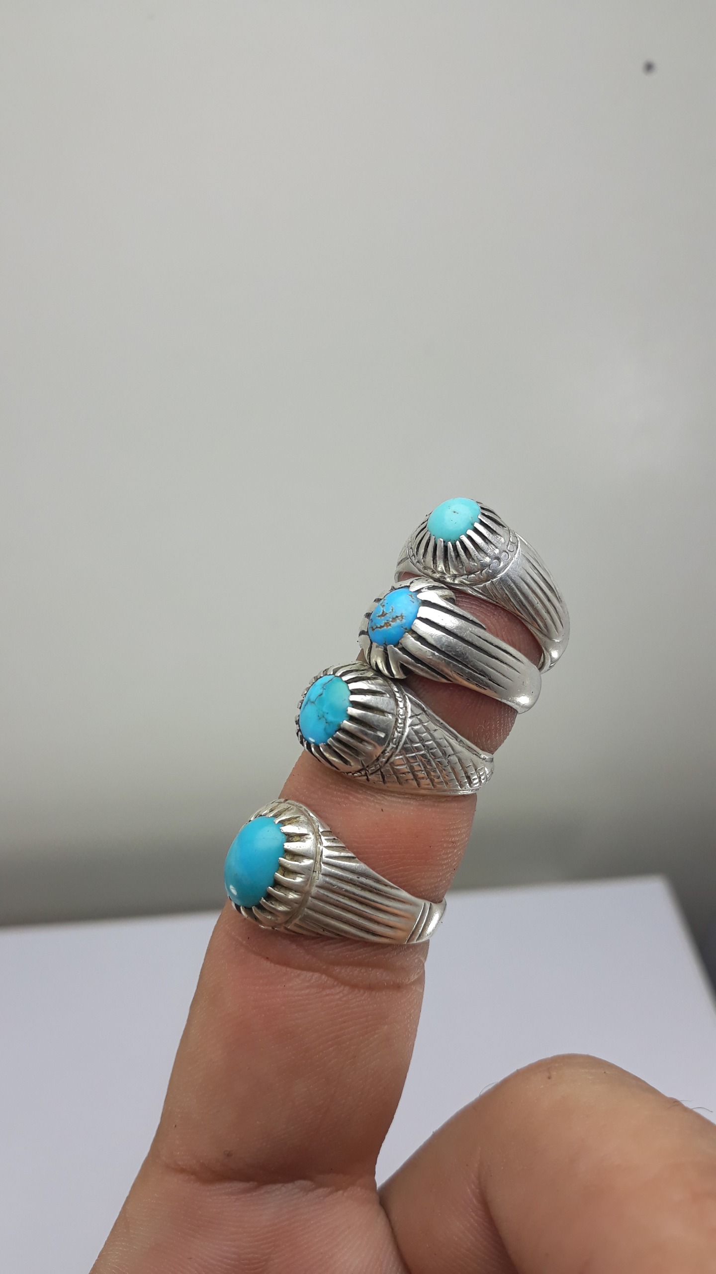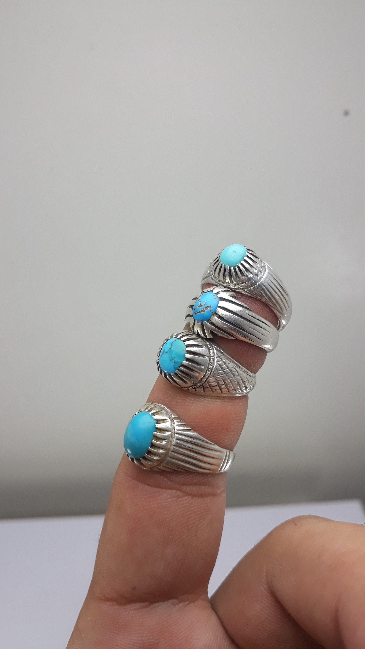 چهار عدد انگشتر نقره کهنه همگی فیروزه نیشابور