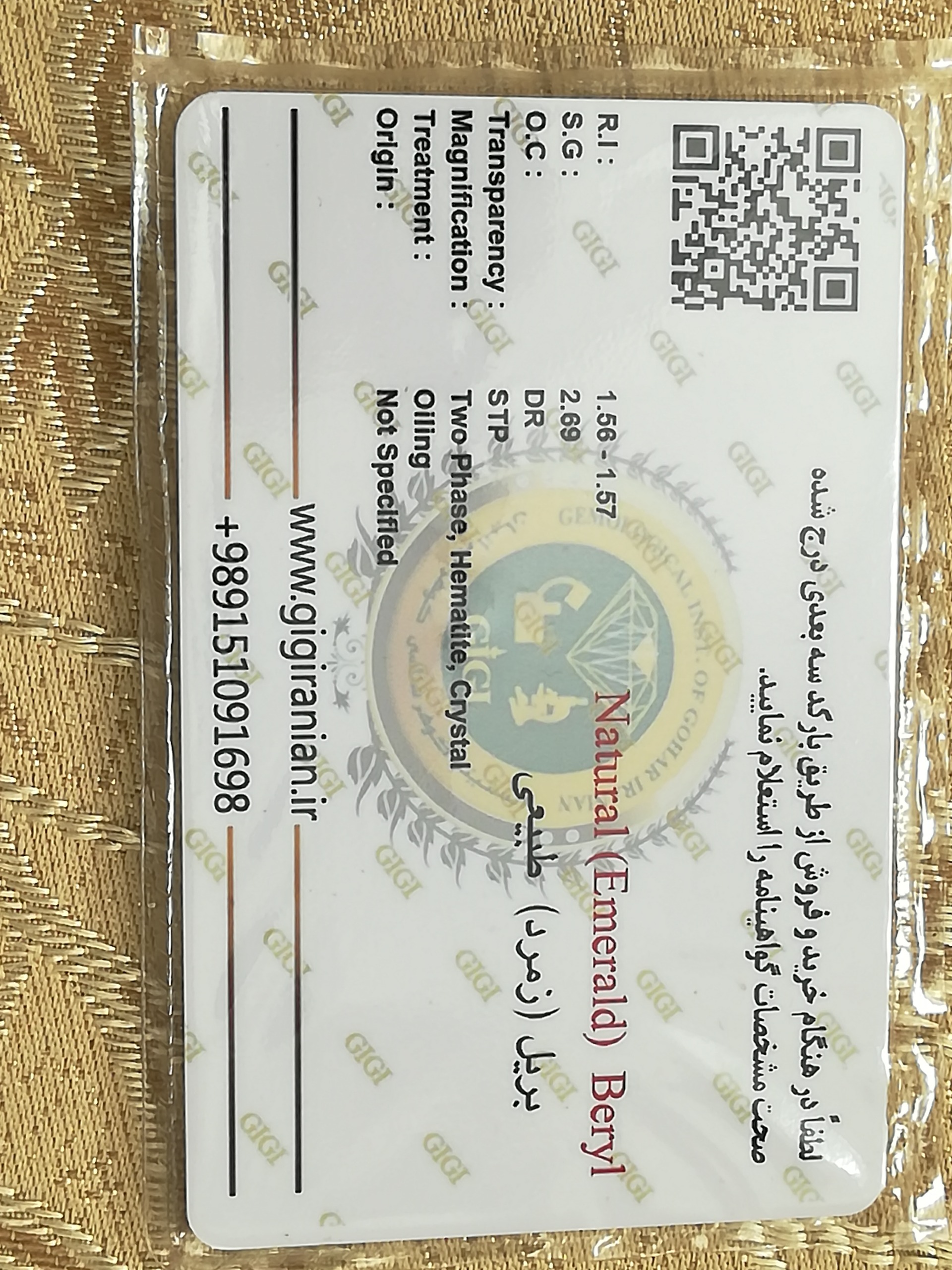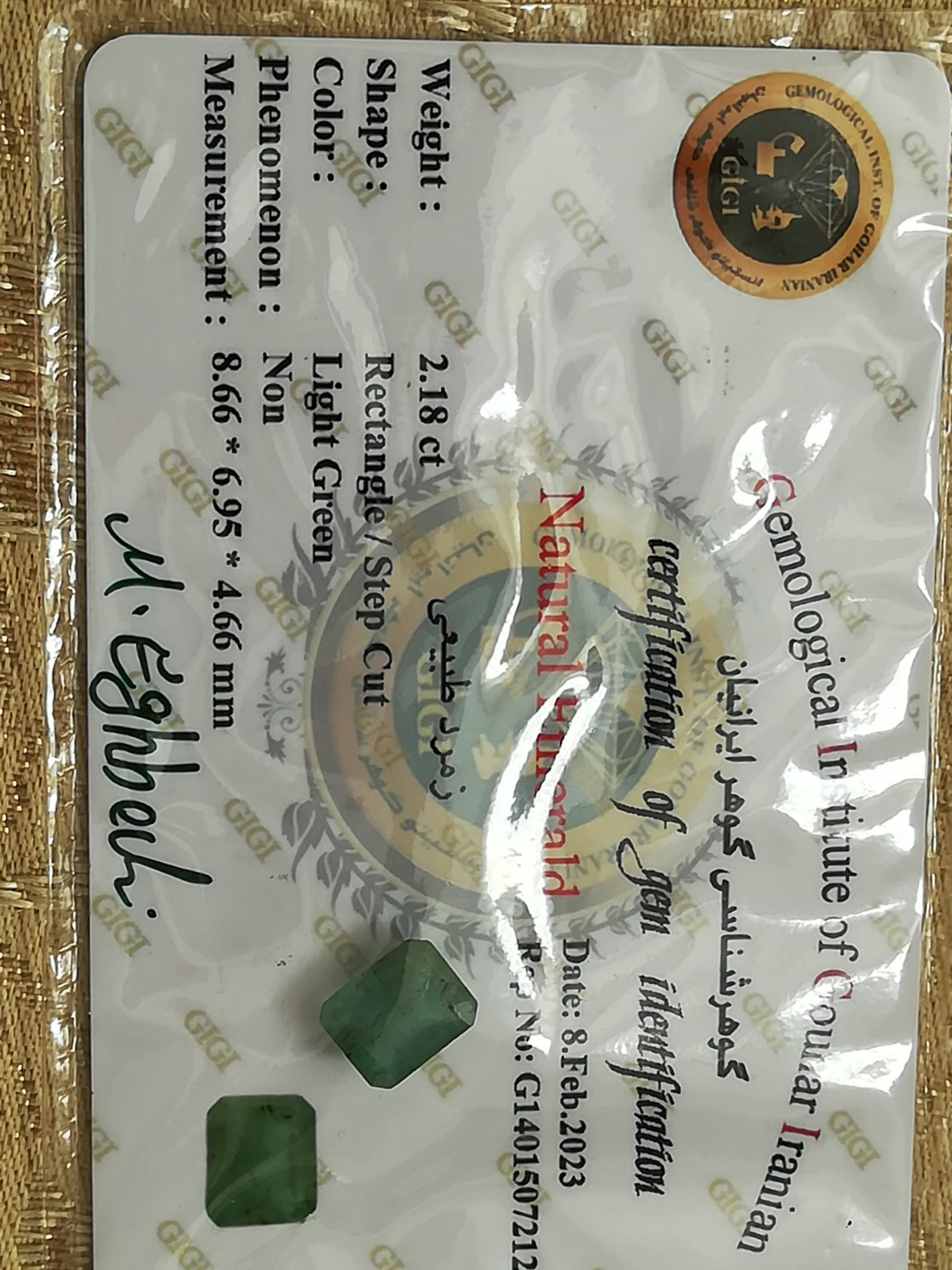 نگین زمرد منیحتمل زامبیا... وزن 2/18قیراط بر طبق شناسنامه